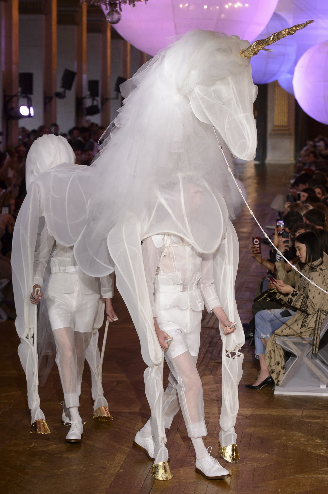 Why be a regular old unicorn when you can be a Thom Browne unicorn? The designer isn’t exactly someone you’d picture washing down unicorn toast with a unicorn latte in a unicorn café, but trust Thom to turn the year’s most annoying trend into a transcendental dreamscape, closing out his splending spring/summer 18 with a gauzy unicorn “worn” by two models. Actually, forget Halloween — I want to be a Thom Browne unicorn for my wedding.