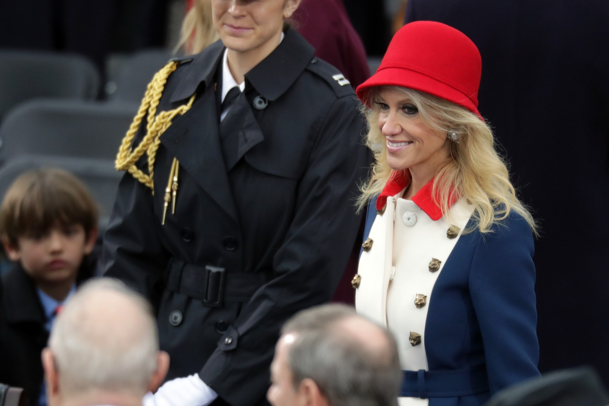 Alessandro Michele is just one of millions who probably doesn’t want to relive Inauguration Day 2017 — when Kellyanne Conway stunned the nation in her finest “Trump revolutionary wear,” a.k.a a resort 17 Gucci coat accessorized in the style of Paddington Bear. Don’t forget long red gloves, a red hat, and an apology letter to the black-stretch-pants women of America.