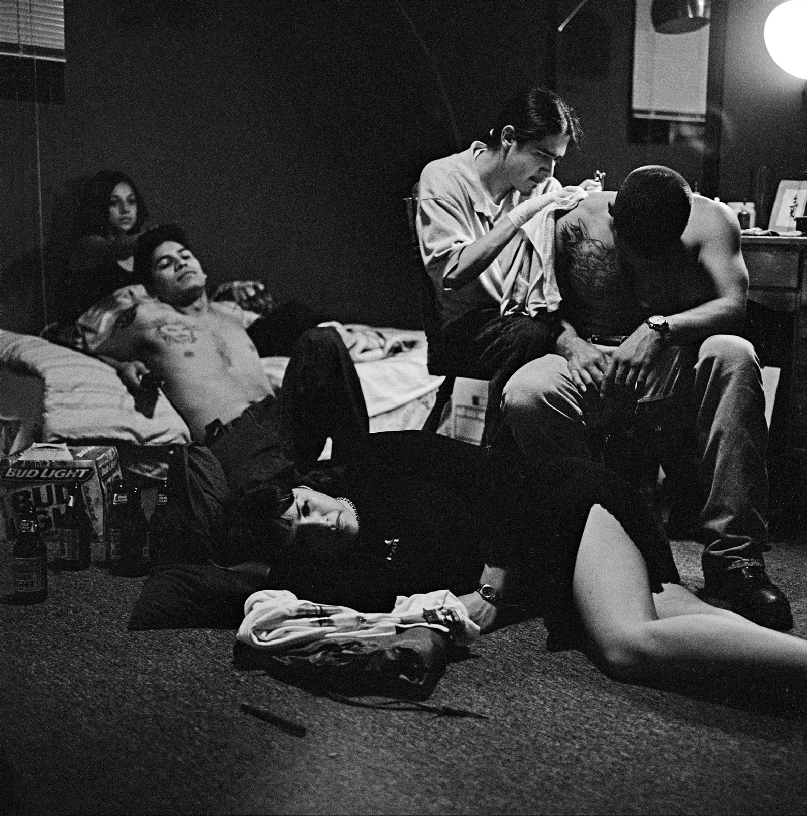 Because he knows them as individuals and not as stereotypes, Greg refused to photograph guns on principle. “I never tried to incriminate anyone in my book,” he says. “There are some photographers who know someone who can take them to the gangs, and the people are photo-ready. They’re dressed a certain way, showing their tattoos, and they have their guns out. People think, ‘That’s a great photo,’ but it’s a production. It’s set up. When guys are hanging out, the other guy doesn’t know you have a gun.”