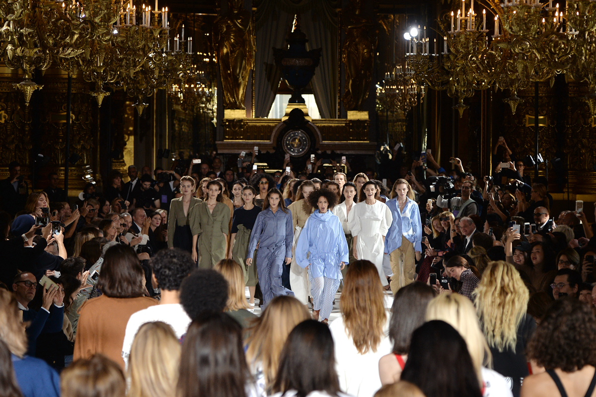 Stella McCartney also had an, ahem, stellar season. This season her jolly models felt spontaneous and unforced as they took to the runway in voluminous pants, shirtdresses, and t-shirts saying ‘THANKS GIRLS’. Indeed. It harked back to when McCartney’s designs were on the back of every girl you wanted to be. At McQueen, Sarah Burton had a vintage outing; she took her atelier on a voyage to the Shetland Islands, and in the process produced a truly remarkable show. On a runway covered in carpets that digitally reconfigured the isles, an array of feminine gowns (anchored by tough, intricate leatherwork) swept out. It seemed to meld the house’s historical sensibility with Burton’s own sensitivity and feeling for what women would like to look like. Both felt truly British in strikingly different ways.