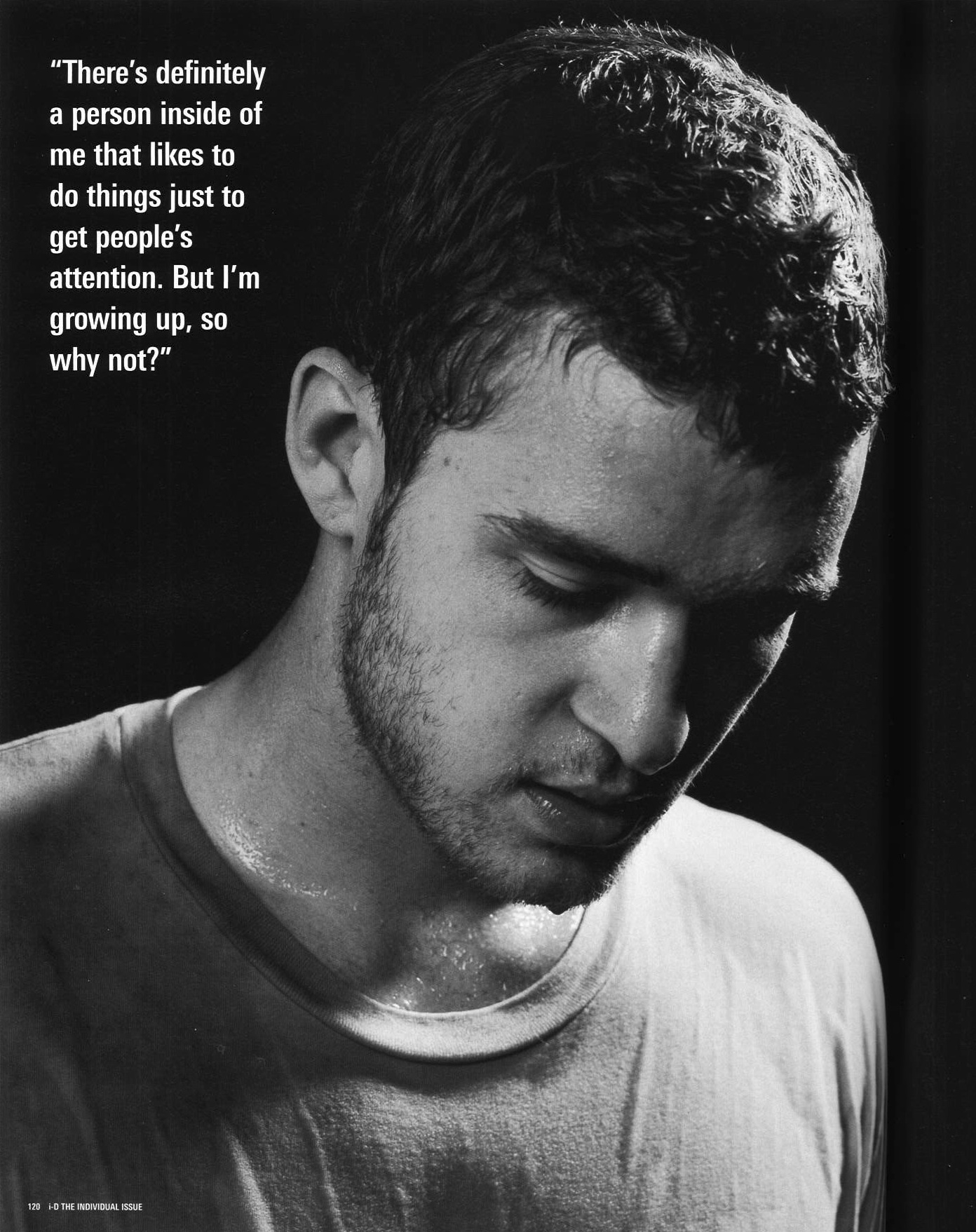 Rising above the ‘boyfriend of’ taglines and instant noodle hair, 22-year-old Justin Timberlake was becoming something of a phenomenon. Appealing to both screaming hormonal masses and the rap world, he sung like an angel and danced like the devil as he co-headlined the Justified/Stripped Tour with Xtina. Later this year he would record the I’m Lovin’ It theme for Mickey Dees and feature on Nelly’s Work It. Justin’s Matt Jones-shot i-D feature is one wet tshirt contest that we wanna be at.