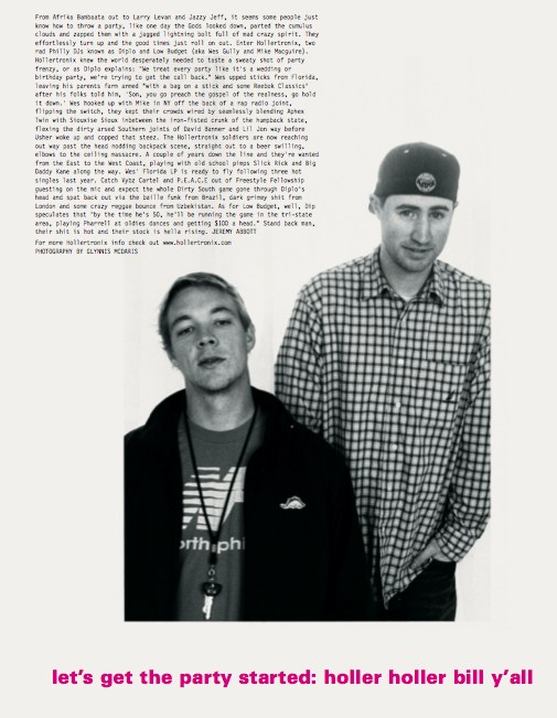 Before the collaboration with M.I.A that would set his production game on fire, Diplo was one half of DJ duo Hollertronix alongside his lesser-known mate, Mike Mcguire. “We treat every party like it’s a wedding or birthday party. We’re trying to get the call back,” he told i-D back then, before explaining how to he came to leave his parents’ farm in Florida for NY. “Son, you go preach the gospel of the realness, go hold it down,” they apparently told him. And so off he went, “with a bag on a stick and some Reebok Classics” to a future of Hollywood hills and super producer bills.