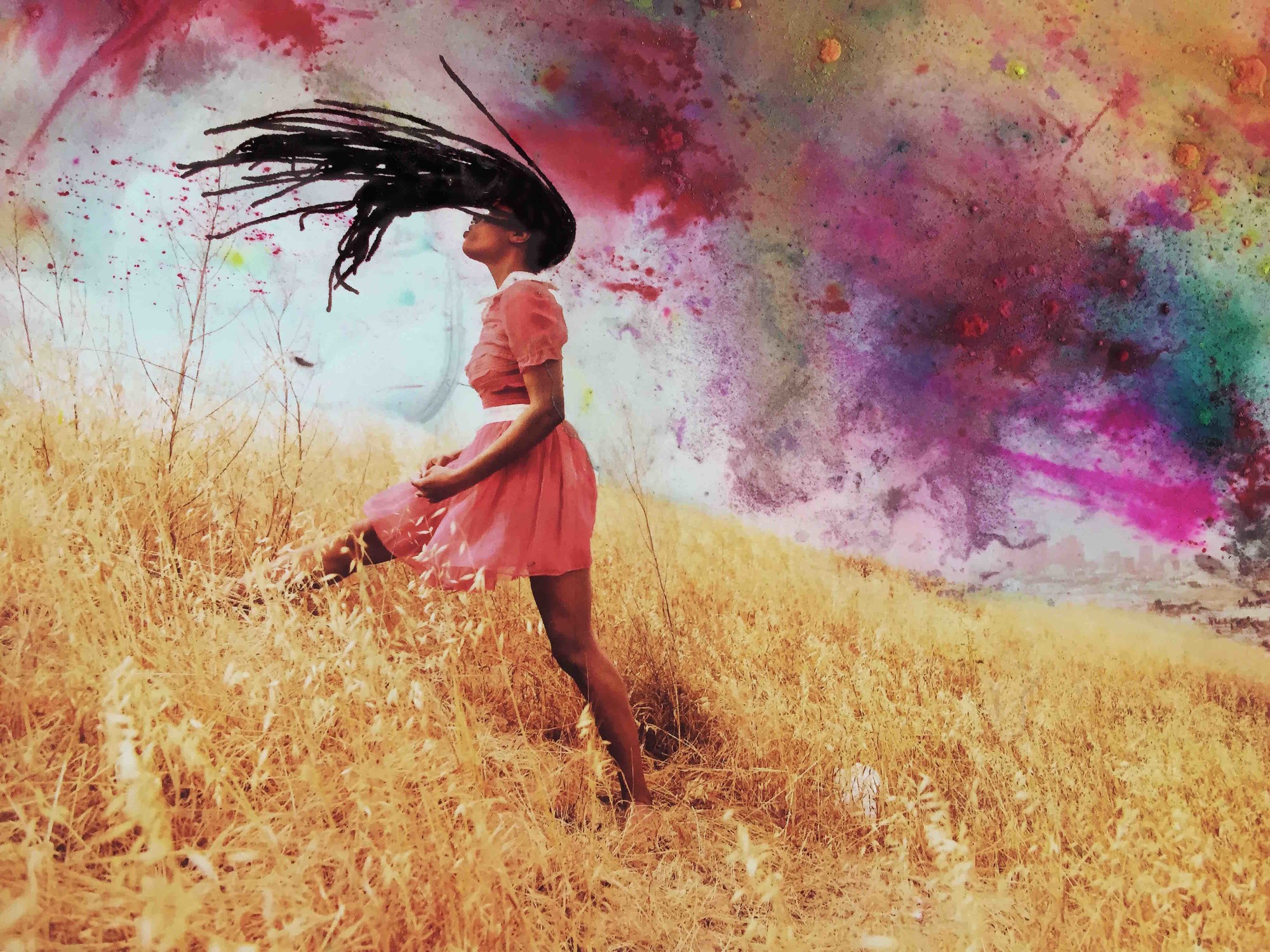 I took this photograph of musician Sudan Moon last year, on a secret field in the Echo Park hills overlooking downtown Los Angeles. Her energy is magnanimous. I was going through an experimental phase a few months later and decided to play around with some pigment powder I had purchased in India. It was a spontaneous, happy surprise.