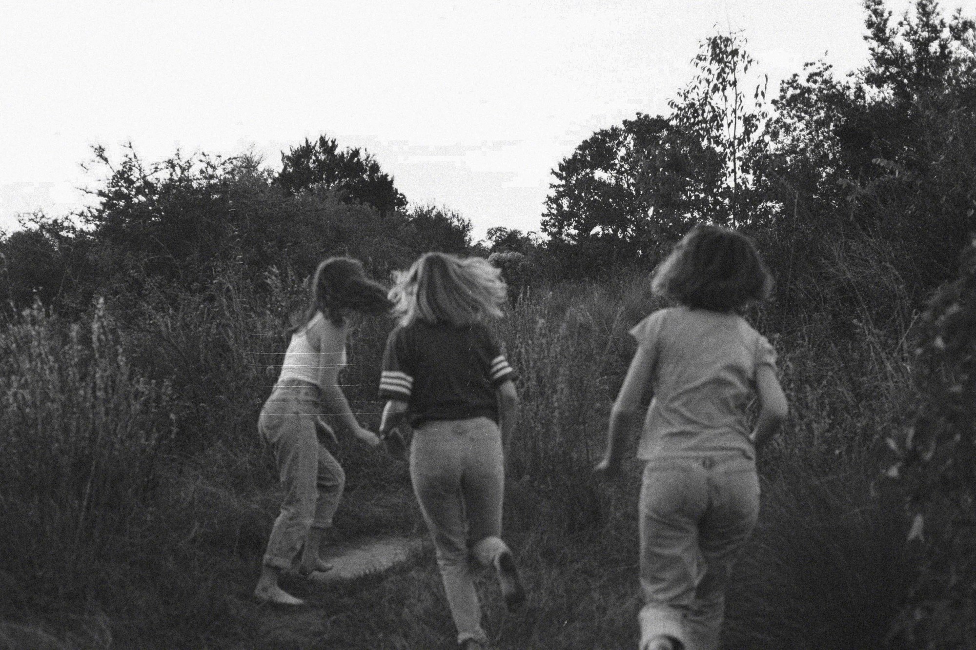 The image is a black-and-white film photo of three of my best friends. We went out to South Carolina, stripped down, ran around naked, took photos. This was shot a day before we all left for home. I lived with these three girls all last year and I love them to death, they’re my muses.