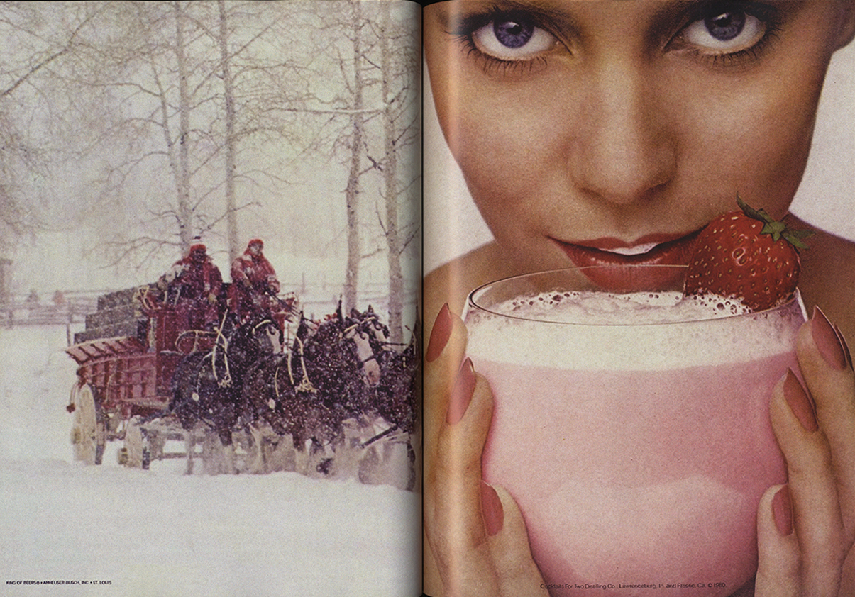 I see myself as an editor here! My training was as a graphic designer and all my work here has been with curating and editing the images. While I’ve held to the chronology of ads that appeared in Playboy from the 60s to today, it mostly was a task of cutting picking and choosing images from the years. I chose to place images side-by-side that had actually come from different ads. The result is a bit offbeat, cynical, and just plain funny. Since my dad works in film, I think I’ve understood the power of editing from a rather young age. I like the idea that you can tell thousands of different stories from the very same pictures.