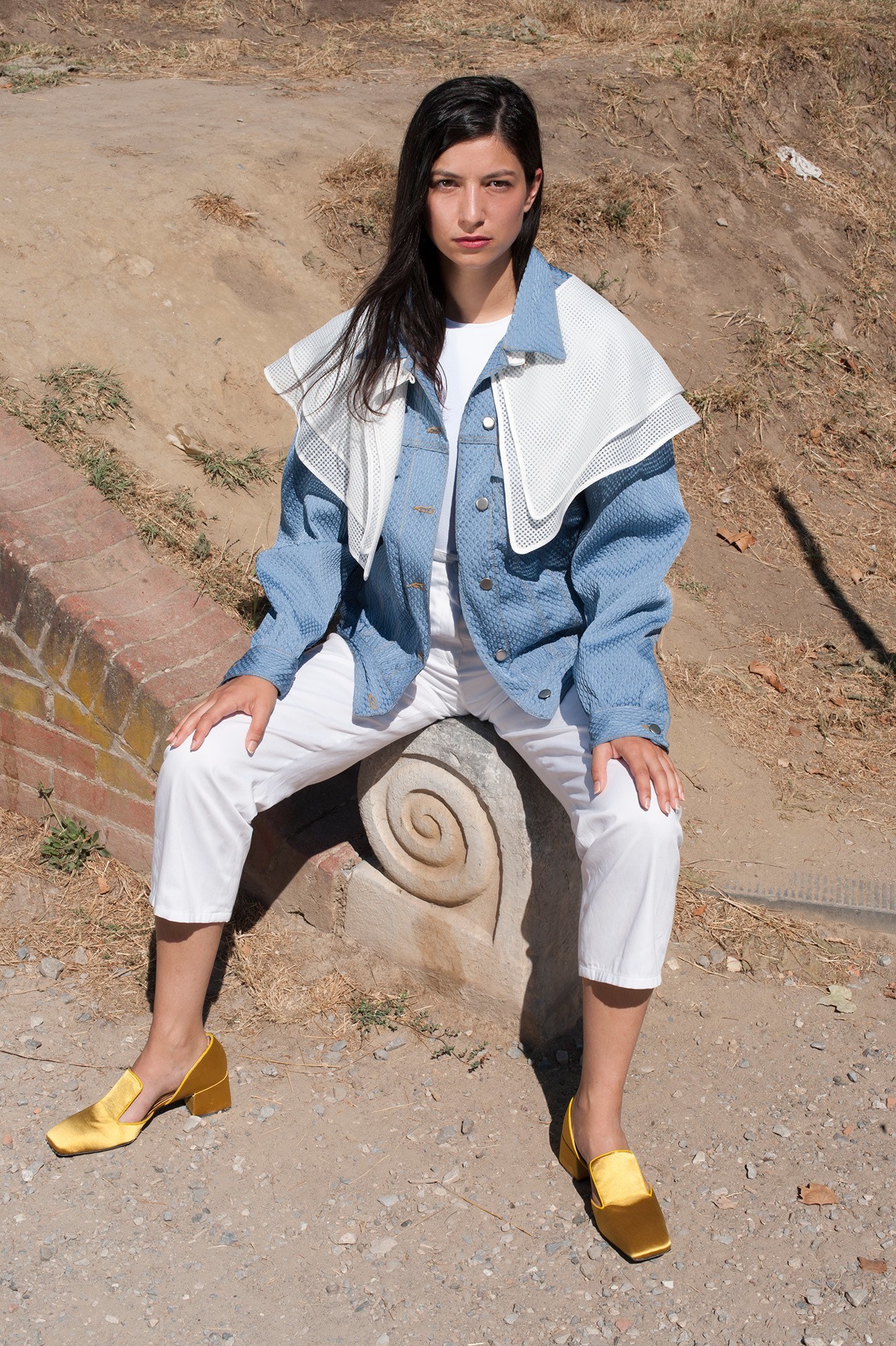 For L.A.-based BreeLayne, being environmentally conscious is just as important as the clothing itself. But don’t think that limits the creativity of her designs. From a denim tuxedo with a ruched jacket and exaggerated wide-leg trousers to a hooded checkerboard jumpsuit, her pieces provide a surrealist take on the aesthetic of the Tumblr generation.