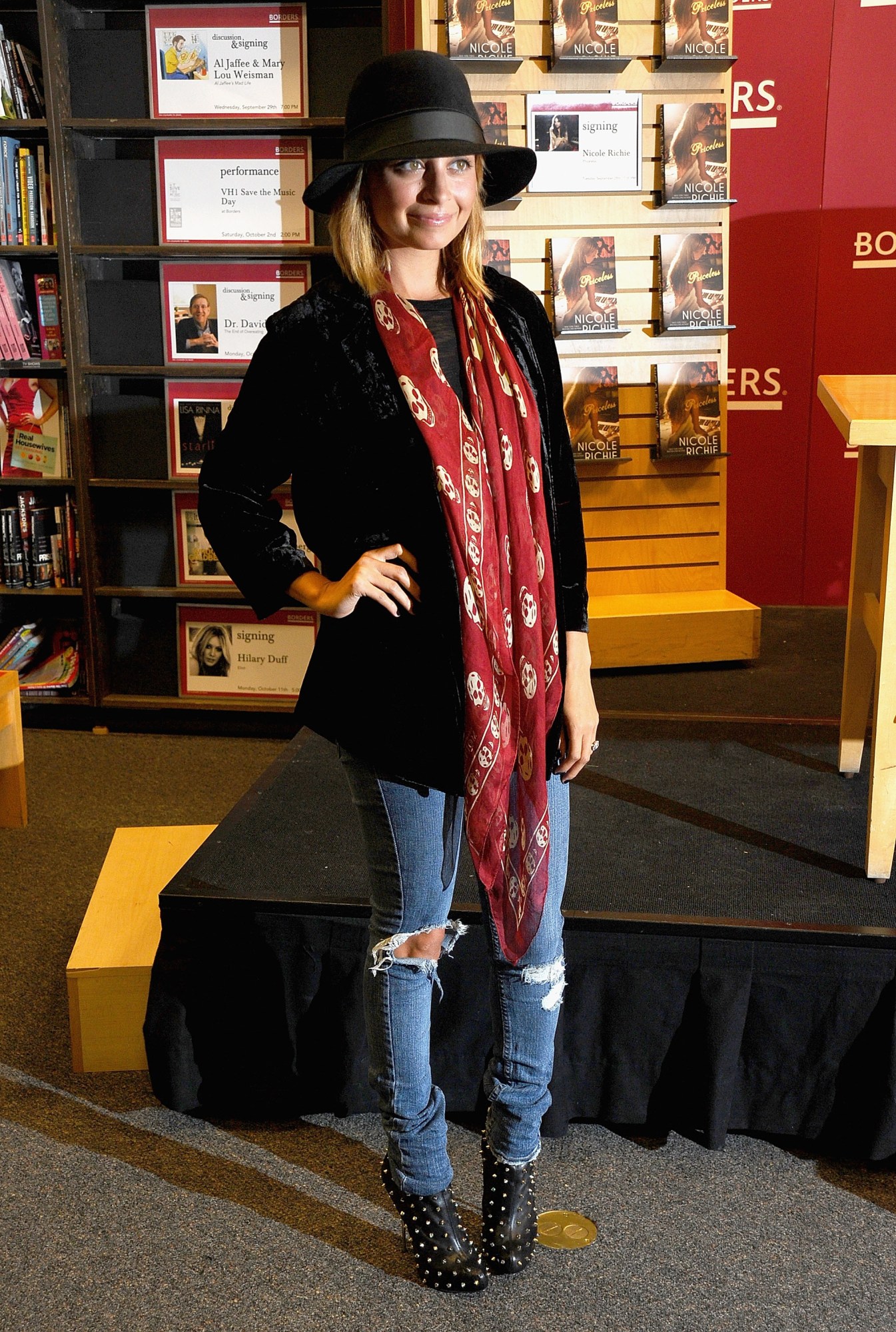 By 2010, our chameleonic star had ditched the flashing on the runway and the reality TV stardom for another career: literary sensation. This look, at the launch of her second book Priceless — a tale of a girl who loses everything to “find out what really matters in life” — marked a turning point in her sartorial choices. Gone was the dark tan and the smudged make-up, and in its place was… well, pretty much all the markers of 2010s style, as we would come to know it. Alexander McQueen skull scarf? Check. Floppy ‘boho mom’ hat? Check. Studded boots? Ripped jeans? Posing with your hand glued to your hip? Give this woman the props she deserves for influencing every single OOTD pic on Tumblr and Lookbook.nu for years to come.