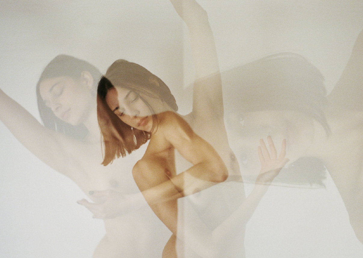 In her new book, I Think It’s Time to Take the Clothes Off, Yolanda pushes forward with the exploratory nature of her images, stripping back two models and photographing them in moving and delicate detail. “This book was created during lockdown by accident. I was making a book called Eye Am Lonely, a photo-diary book to provide a self-healing process of dealing with the madness in my head. The moment when I finished it, I knew it wasn’t right. I felt frustrated and started making collages — a way for me to decompress when I have too much going on in my mind. I was playing with the images of Akti and Xristina and then I started seeing a connection and went on to make this book.”