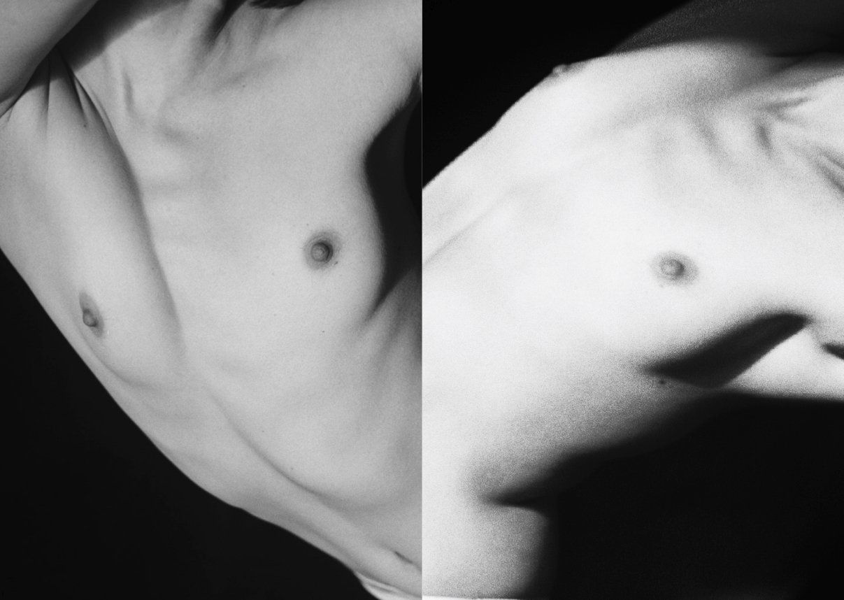 Yolanda developed the black-and-white film for this book herself. “I’m interested in inviting imperfection and unpredictability into the image-making process, allowing the materiality of the film to coexist with the photographic image.” She also deliberately soaks the film rolls in various fluids causing the film material to degrade. “Ultimately this book shows my obsession with human bodies and how beautiful I think they are,” she finishes with. “How two separate images can become one when they are placed side by side — something that is not evident when either image is seen individually.”