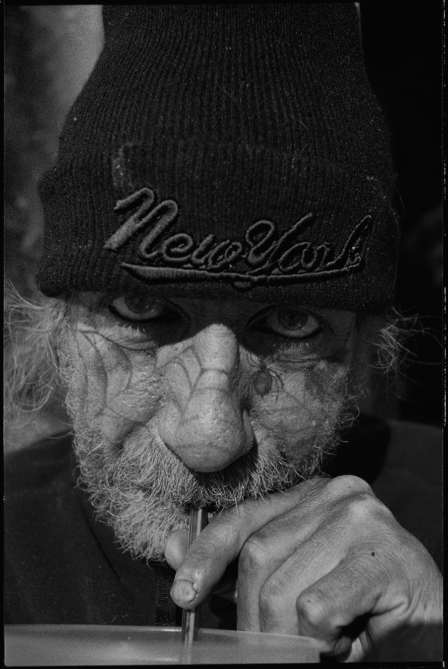 This is definitely one of the saddest transformations I’ve witnessed while documenting the homeless in NYC. Bobby was living with a guy in the early 90s on Dyckman Street who later told him that he had HIV. He then moved to the Bronx with his beautiful girlfriend Glenette, who he was with for a few years. They never had sex. Then everything changed, “One night I was really, really, really fucking horny and I was like ‘baby please’ and I begged her so much and she was going to give me sex… [but then] I said, ‘Do you know what? I can’t do this to you… If I have sex with you now, I will rearrange your whole fucking life… fuck the sex.” Suddenly, his words began to slur and tears flowed down his face, getting trapped in his beard. Before parting ways, he told her, “I can’t lay next to you every night and not want to make love to you.”