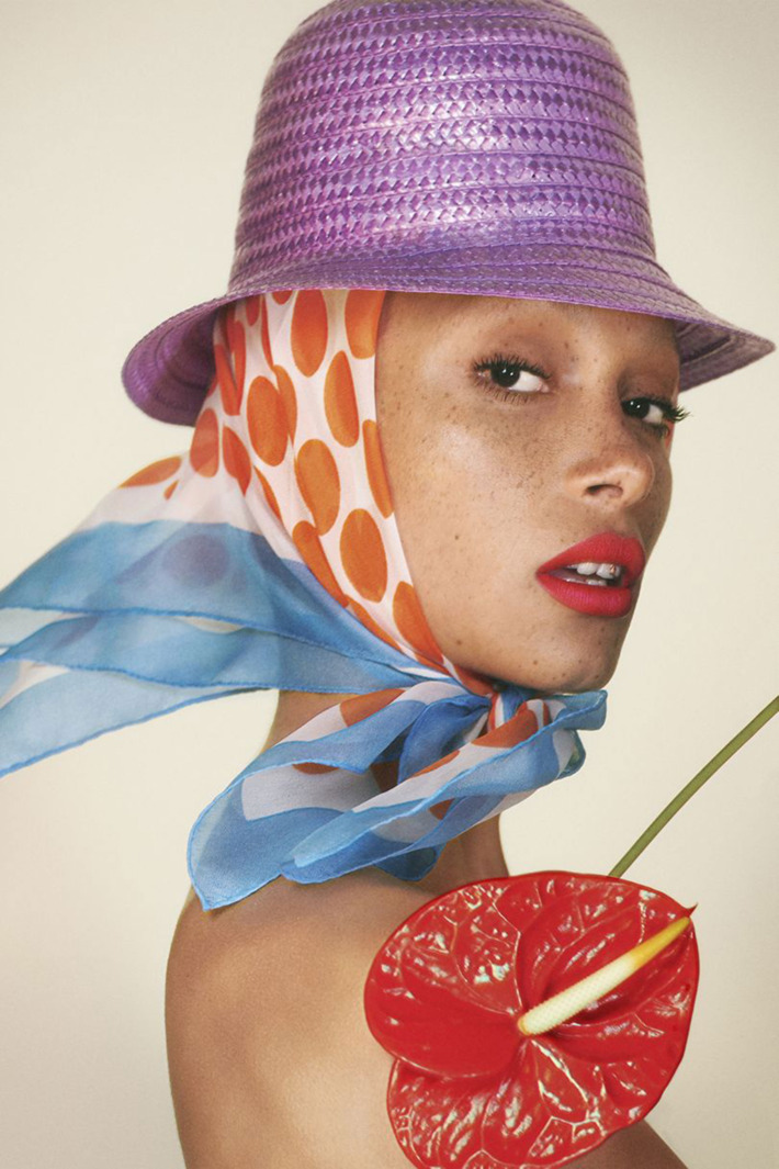 “Over the moon to announce that I am the new face of Marc Jacobs Beauty,” Adwoa wrote on Instagram. “Forever grateful for the support, I have never done a beauty campaign so to have been given this chance means everything. Thank you @themarcjacobs for seeing me from the beginning and knowing that I will always work my hardest to make you’re [sic] vision a reality.” Considering the model and mental health activist didn’t wear makeup for most of her life, she’s a natural fit for what might be Marc’s freshest beauty campaign yet. Adwoa wears the brand’s new Le Marc Liquid Lip Crayon — plus subtle black mascara, freakishly good highlighter, her signature gold tooth gem, and vintage-inspired accessories. Plasticy woven bucket hats never looked so cool.