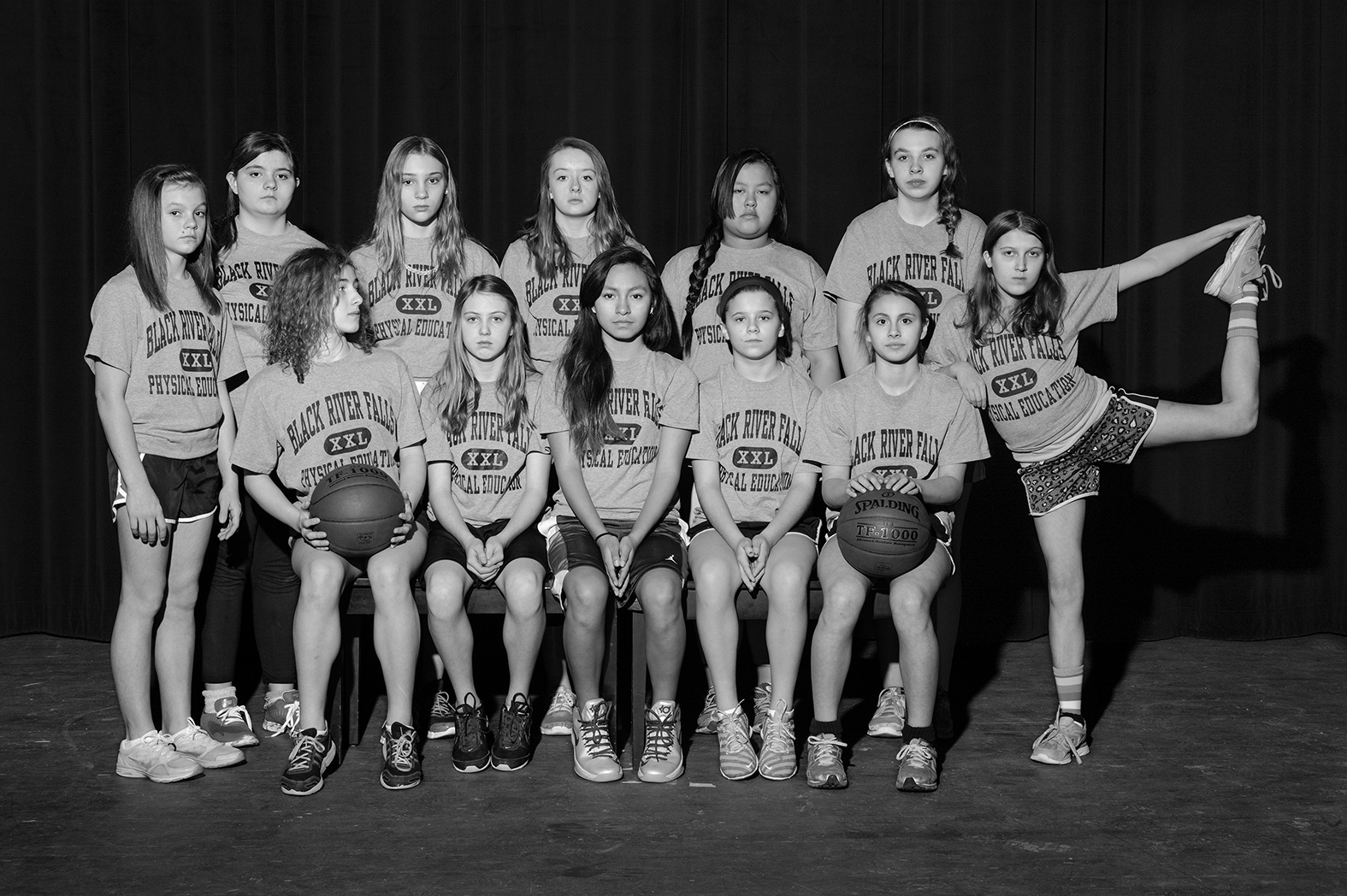 As in Wisconsin Death Trip, Some Say Ice arrives in black and white, a nod to the austerity of the earlier work and Alessandra’s own desire to do away with the distractions and additional information colour implies. Working in schools and churches, on farms and at community events, her images feature coffins, spoons and kids hanging upside down on a sofa; taxidermy, figurines and close-ups of a shirt and tie, as well as a police officer facing up to a dog in the snow, and a teen sports team. “Wisconsin Death Trip was my motivation to work in Black River Falls, but not the model for the structure of the work,” she explains. “There are allusions or winks to it though, as with the image of the horse at the beginning, and I had its old group portraits in mind as well. But Black River Falls has no semblance to what it was at the turn of the 19th century; neither was I looking to make it look that way. It was my own Wisconsin trip.”