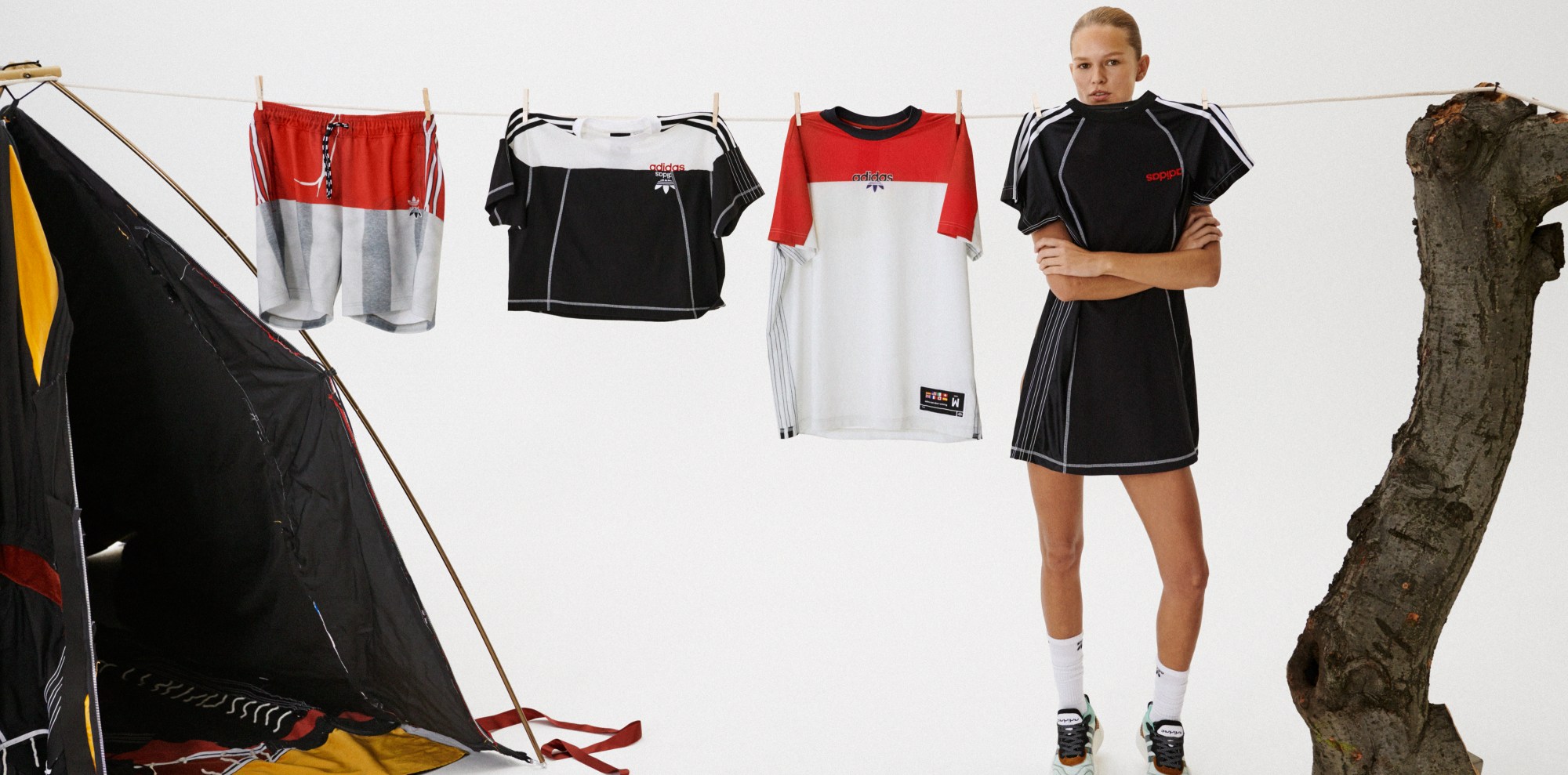 This season Alexander has revisited his favourite pieces from the last three collaborations with adidas, and spliced them together with some of his favourite items from the adidas archive in an “imperfect, off-kilter” collage, according to the press release. A twisted take on staple garments and sporty essentials, it sees football shirts and training gear cut-and-pasted with 70s skate, 90s hip-hop and 00s basketball trainers that often meld two distinct adidas silhouettes together.