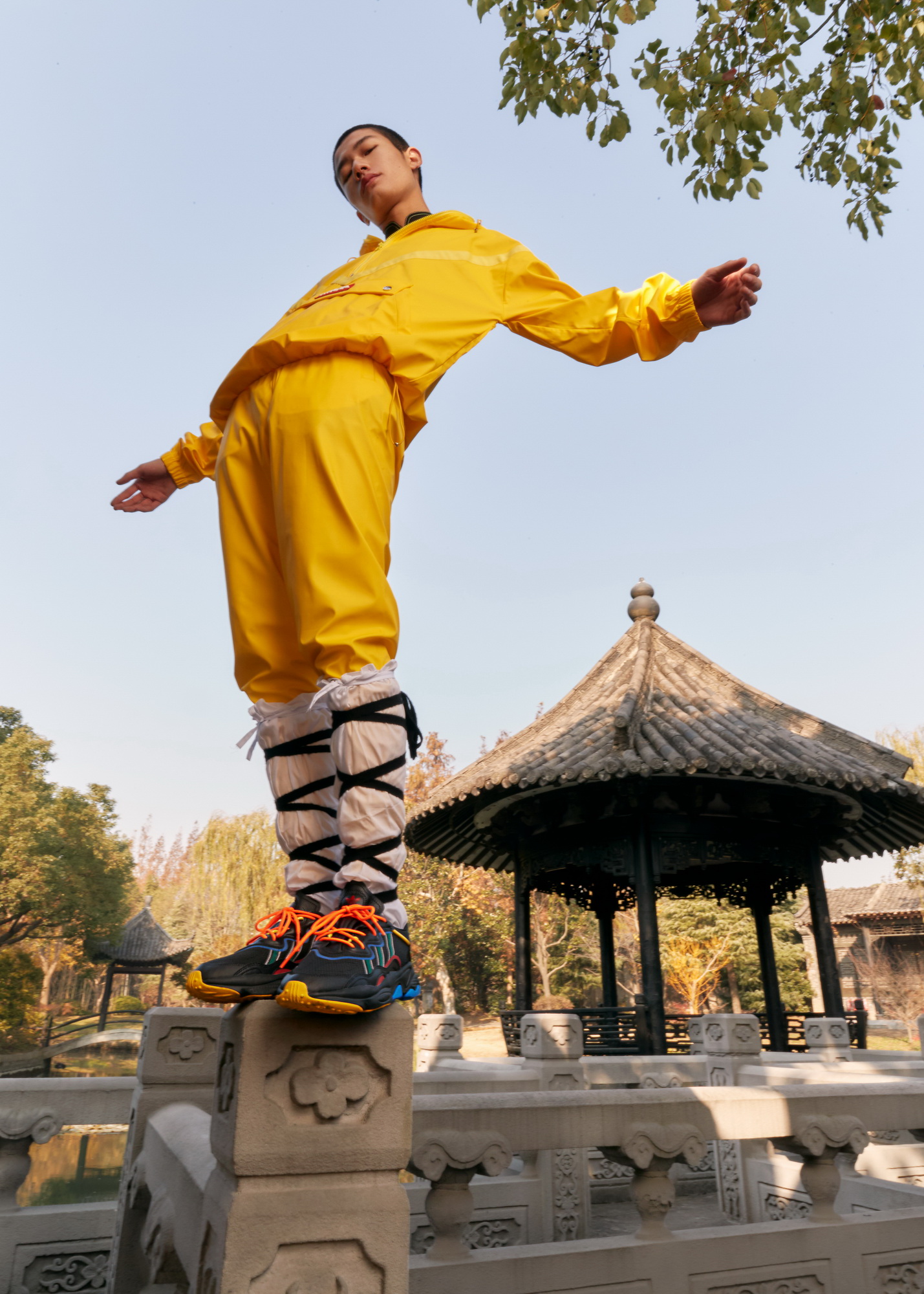 For the capsule, I drew inspiration from Chinese calligraphy, while celebrating China’s successes and cultural resonance in sports like ping pong, kung fu and diving. As with my own label, I always aim to create a bridge between East and West. It also happens to be a good opportunity to encourage people to be active during these challenging times and keep a positive headspace.