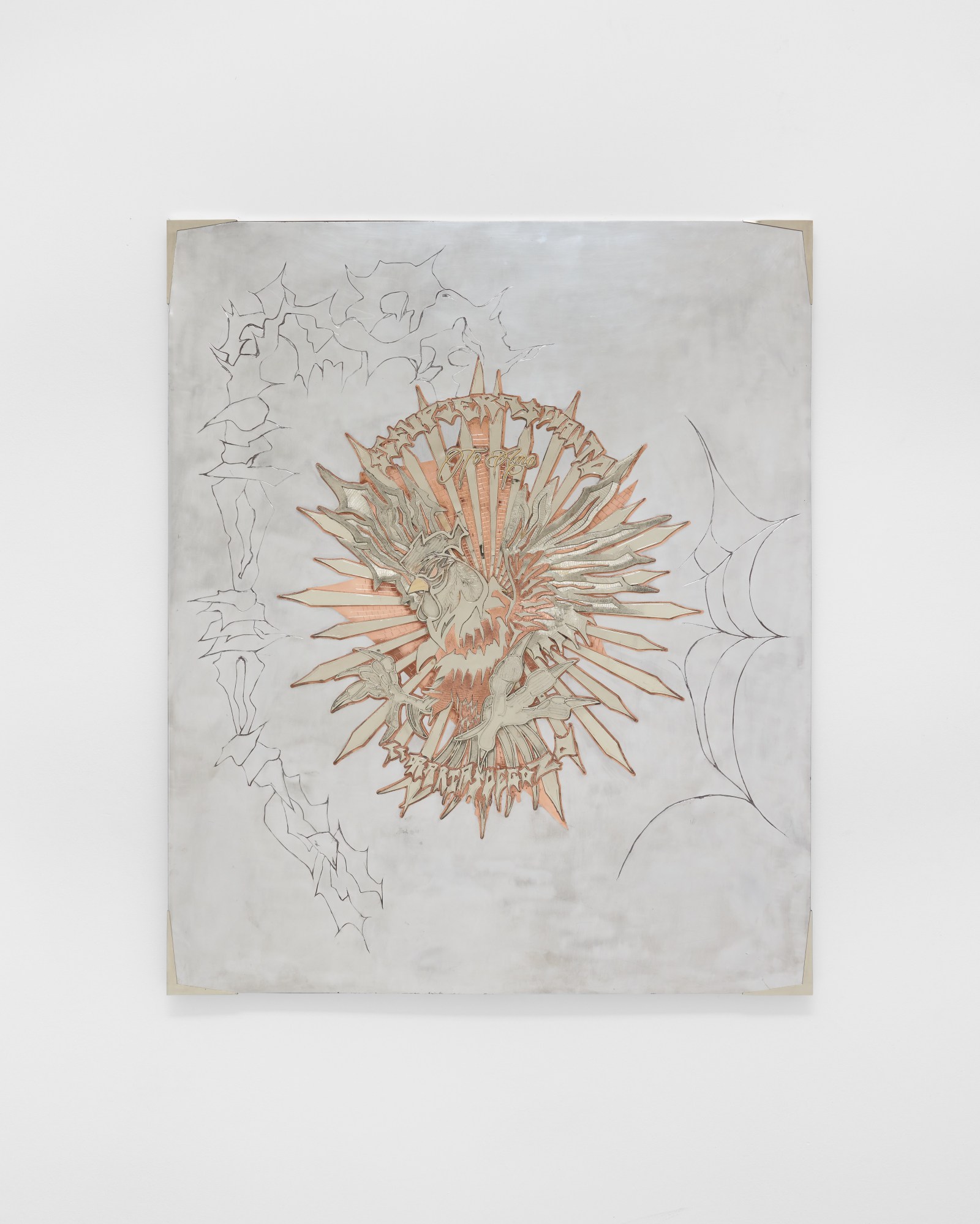 “I believe metal and rock can become relics and artefacts that transcend over time. I have always worked with metal, but in this show, I wanted to bring in the volcanic rock from Jalisco, Mexico, where my mother is from,” she says. “It has the same presence and strength as metal and represents parts of my origins, which is deeply meaningful to me.”