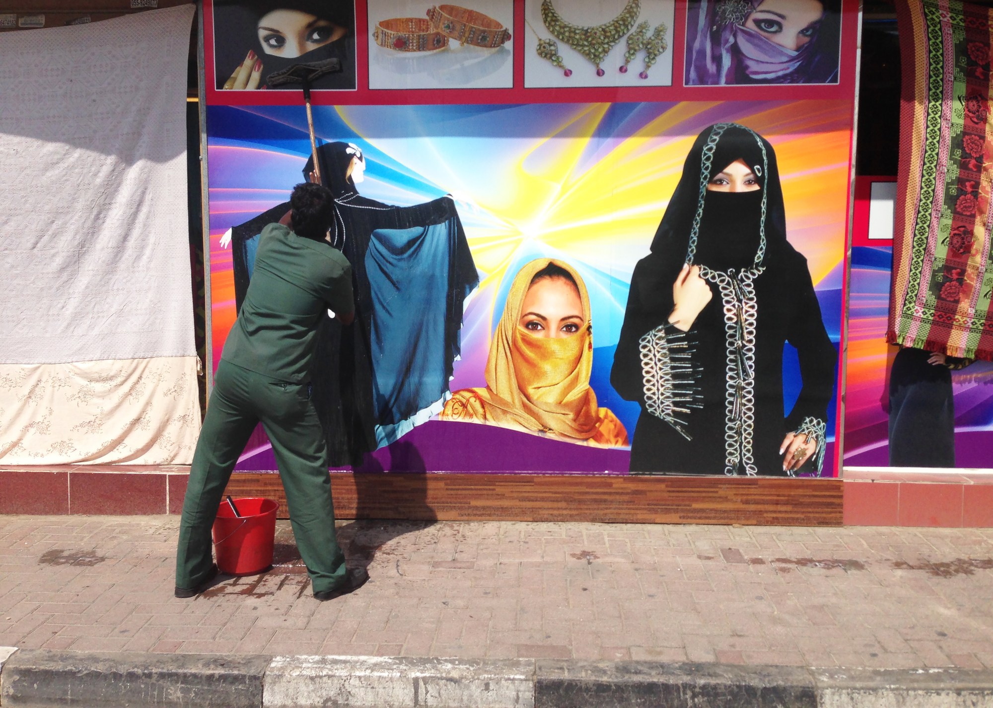Nearly every photographer, Farah says, whitened her skin in the final image. “It’s just a thing that all photographers do there. It’s a given. Most people made my teeth white and my cheeks redder. Basically like descriptions of Snow White.” In addition to the belief that paler skin looks more Western and is more desirable, “In the UAE, ideas of paleness are related to status and labor,” explains Farah. “They say that women who are darker have been outside in the sun, because they’ve had to work. It’s a shared belief that is profited off.”
