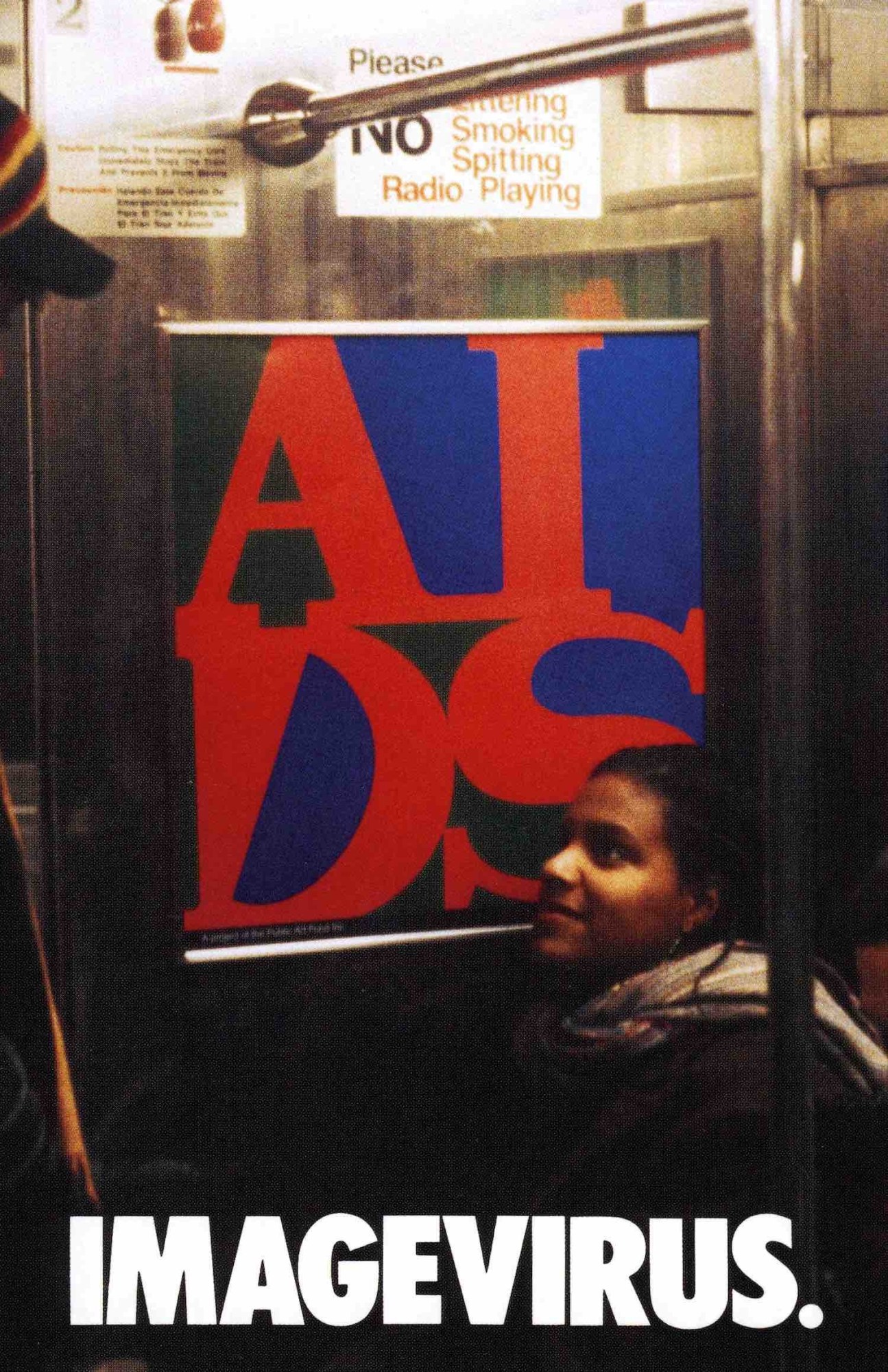 Around that time, a controversial series of works appropriating Robert Indiana’s “LOVE” logo and replacing it with the letters A-I-D-S cropped up around New York and, soon after, across the world. Imagevirus, the title of the work, was initially conceived as a painting in 1987, and was later replicated in various formats – as subway posters, public sculptures, an animated billboard on Times Square, as advertising banners on Amsterdam’s trams – all using the mechanisms of “viral transmission.”