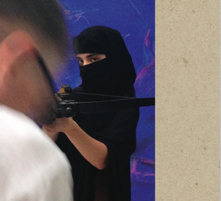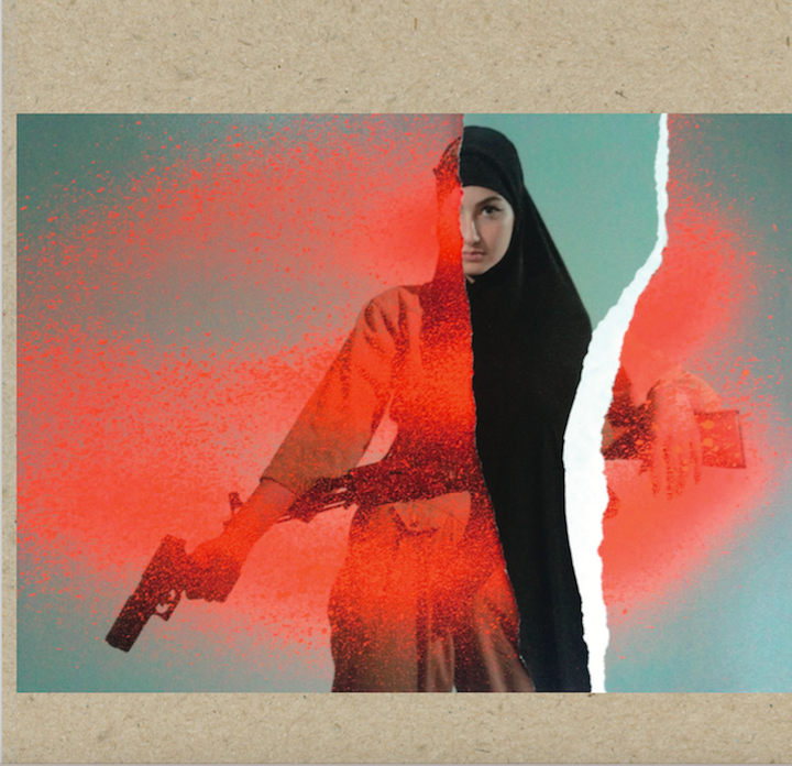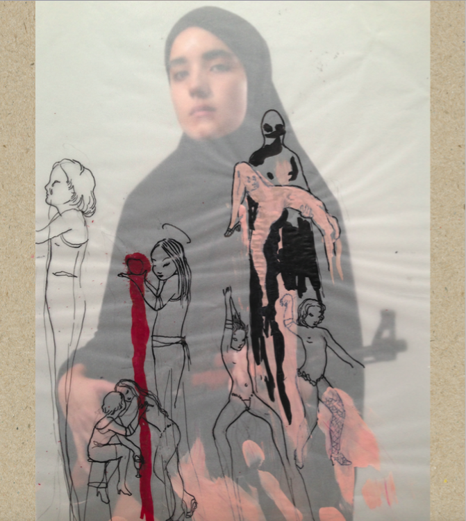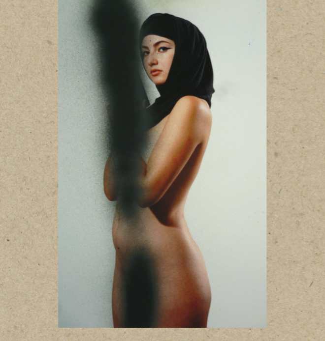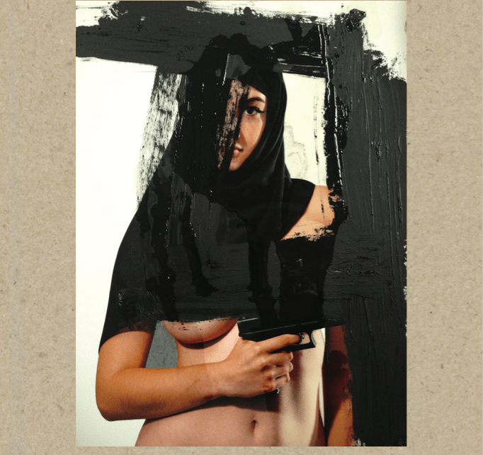 Ackermann’s striking abstract paintings combine with Kern’s starkly literal photographs of girls wearing hijabs to create a surreal form of political commentary. The images critique modern vices such as social media obsession, radicalism, and post-9/11 rhetoric. According to Jeffrey Grunthaner, a writer and curator who contributed an essay to the book, Jezebels addresses how “sex can mingle with violence in ways other needs cannot. The revolting, the destructive, the unpleasant, are not what we associate with alienation, for example.” He continues, “[Jezebels] is a kind of backdrop prepared for the inauguration of violence, at least psychologically as an accoutrement of fantasy. The nakedness of the girls is guarded; however suggestive, they’re well defended.”