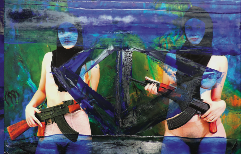 If the images in contemporary painter Rita Ackermann’s new book shock you, then they’ve achieved their purpose. Ackermann created the 33 mixed-media pieces in Jezebels using images of naked gun-toting girls taken by legendary photographer Richard Kern, layering them with her own textured brushstrokes. The goal of the collaborative project: holding up a mirror to the imagery of sex and guns we face daily, and asking what exactly it’s doing to our youth.