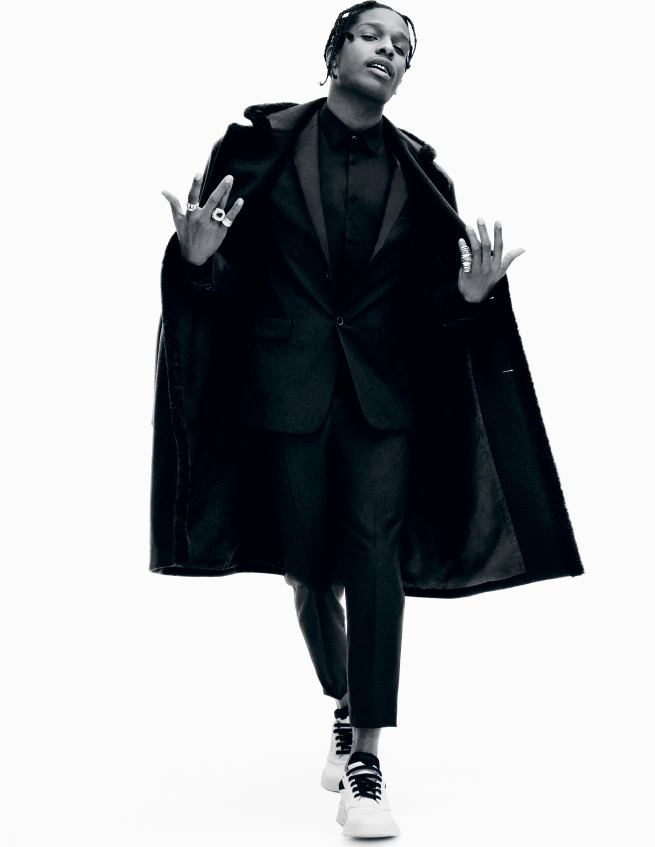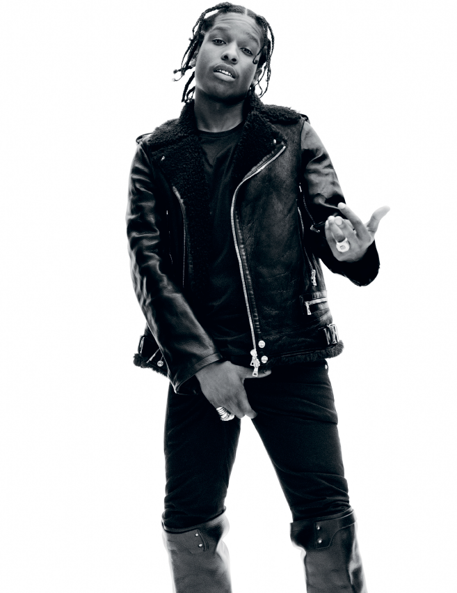 Yes, this Raf Simons obsessive still has one foot firmly planted in the fashion world. He delighted the industry with his name-checking jam, “Fashion Killa”, and has modelled for DKNY and Alexander Wang. For Rocky, fashion is another means of artistic expression, along with music and directing. But he is disillusioned with his position as a fashion plate: “I don’t fuck with everybody at this current moment. Fuck all these fashion motherfuckers. I’m interested in Raf Simons, Rick Owens. I love Dior and Prada. Margiela’s cool. Personally, shout out to Jeremy Scott and Alexander Wang. Everybody else, fuck ‘em.”