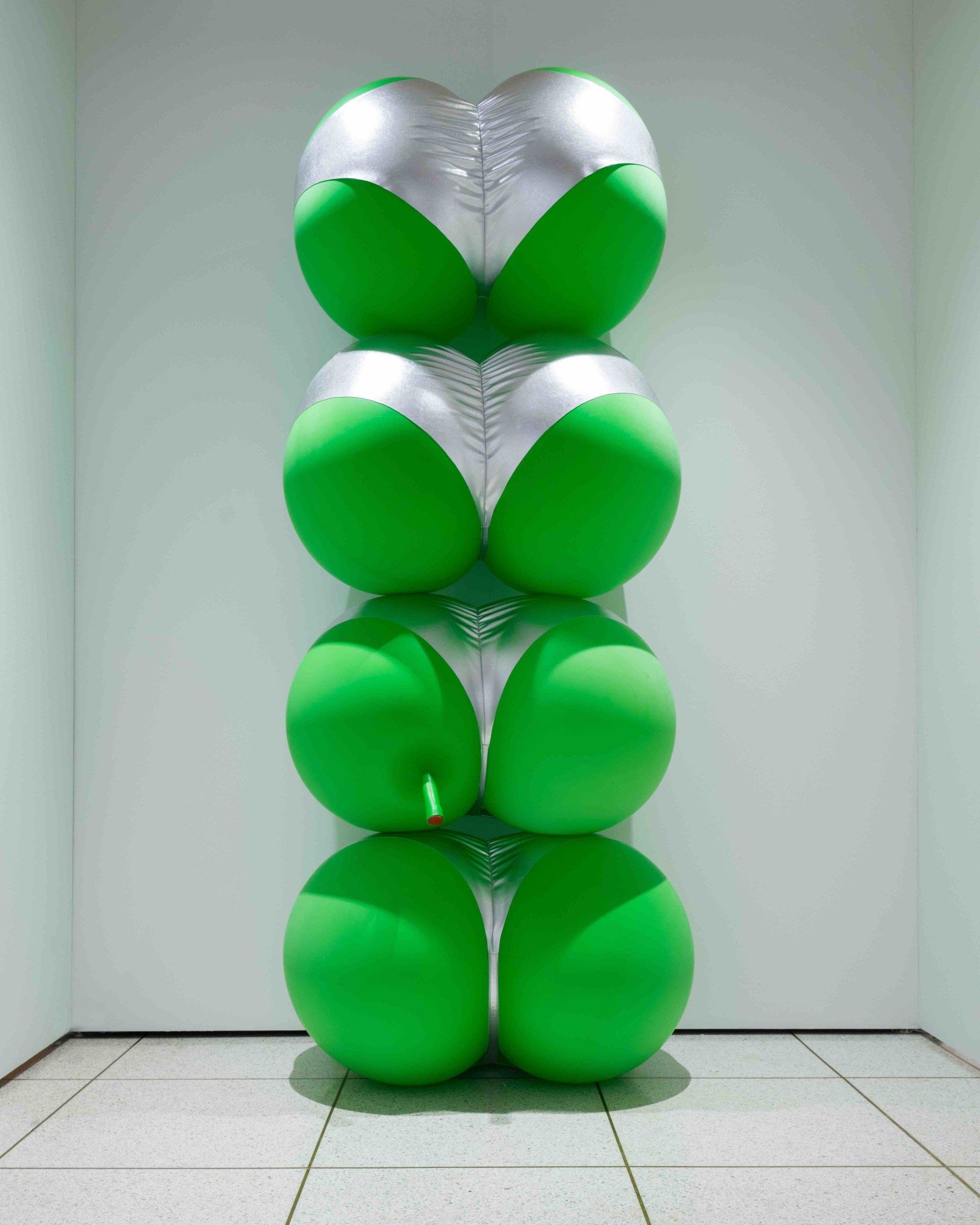 At NADA, artist Nancy Davidson showed a piece using inflated weather balloons to celebrate the gravity-defying female body. Her “Stacked” sculpture is a tower of cheery and voluptuous green derrieres, bursting out of silver bikini bottoms. It’s sensual and absurd at the same time, challenging standards of both sculpture and beauty. Davidson’s work, which began as a response to male sculptors like Richard Serra and Donald Judd, changes the conversation by using latex and fabric instead of the more stoic steel and concrete of 60s minimalism. Her work references female pop culture icons — from Betty Boop to Mae West — and is impossible to ignore.