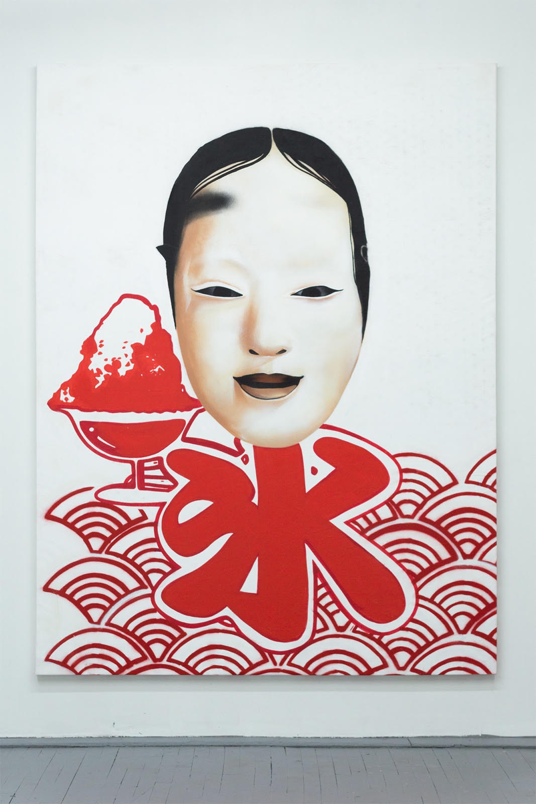 At Context Art Miami, the young Japanese-American performance artist Ayakamay connected the dots between feminine and masculine, east and west. Her painting “Behind The Motherland,” exhibited at the Licht Felid Gallery booth, melded a traditional Noh mask, a Japanese pattern, Kanji characters, and a shredded ice cup. As a Japanese woman, Ayakamay has felt extra pressure to be feminine, and admits that she has struggled with that. At her first solo show, “Genderless,” at the Leslie-Lohman Museum of Gay and Lesbian Art, Ayakamay immobilized herself by tying her hair to strings, which were connected to the ceiling. She then invited visitors to shave her hair off (in a clear nod to her compatriot Yoko Ono). They complied, and Ayakamay found herself completely bald and suddenly free.