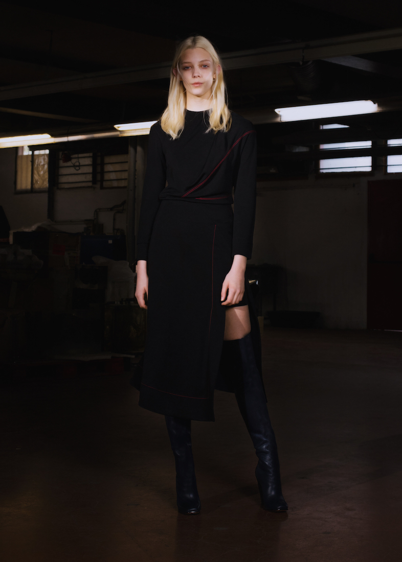 I like the feel of jersey, I like how it drapes. And it’s easy. I want the girls who wear my line to be comfortable. Jersey can be a T-shirt or more refined. It’s a bit like knitwear, it’s more a category than one fabric. Also, I love Jean Muir, the designer from the 60s. She was super modern somehow. It feels right for now. So I really looked at what she did and I found some of her pieces in vintage stores, which were really inspiring.
