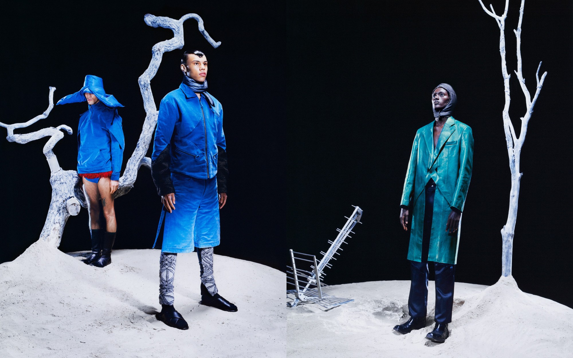 To indulge the escapist urges we’ve all felt over the past 12 months, you’ve probably mapped out the details of your first post-pandemic holibobs to a tee. If the chalky white set of AV Vattev’s AW21 lookbook images are anything to go by, Antonio Vattev, the London-based label’s namesake founder, has a destination rather more adventurous than most in mind: the moon.