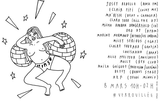One of France’s most exciting DJs, and one of our most selected on Soundcloud, Piu Piu, is curating a whole day on Rinse France to celebrate IWD. Expect mixes, talk shows, and interviews covering a diverse range of topics affecting women now; from cinema, fashion and club culture to promoters, discrimination, post-colonialism, sisterhood and 4th wave Feminism. Josey Rebelle, Eclair Fifi and Clara 3000 amongst others, will all make appearances.