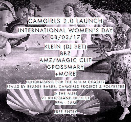 Head down to The Alibi on IWD for Camgirls’ second interactive, collaborative project. The evening looks set to be filled with discussions around women in cyberspace. With stalls from Polyester and Beanie Babies, as well as music from Klein, Siren and BBZ London. It’s clear all the babes will be there plus it’s free entry all night with fundraising throughout the night for National Ugly Mugs charity. Tick, tick, tick.
