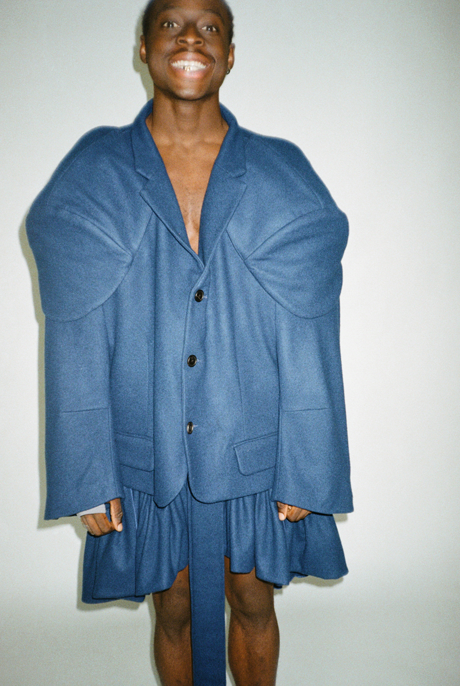 “Touch and feel just became so important to me,” Shayne says, “it really made me consider why people respect ideas. I want to have that jacket that I love last. And then there was the idea of wearing a durag every day, and becoming so attached to it that you then want to see it in taffetas and silks, and even transform it into a dress that can be worn in a number of different ways. Before, it was often about clashing high and low, but now I want to create pieces that can move between different realms, depending on whether you style it up or down – pieces that can transcend that division in their own right.”