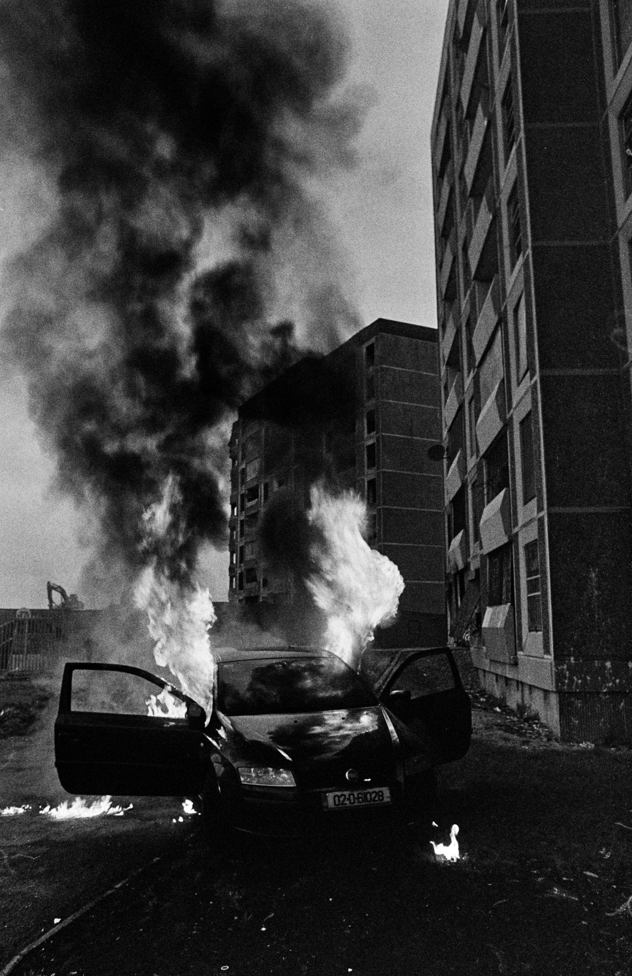 On Halloween in 2005, filmmaker Ross McDonnell was walking through Ballymun, a suburb on the northern edge of Dublin’s Northside, when a teenager approached him. The boy, a resident of the estate’s notorious tower blocks, led him to a roaring bonfire composed of cars and debris, a beacon of destruction among the concrete. Carjacking, joyriding and arson were commonplace in Ballymun, as much acts of recreation as criminality in one of Ireland’s most impoverished areas. Ross, a Dublin native who for years had driven past the seven towers as a film student, felt compelled to document their residents, so often caricatured according to Ballymun’s reputation for drug use and deprivation — but rarely afforded the chance to present their own perspectives.
