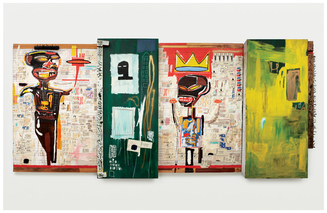 It was upon the doors of lower Manhattan that Basquiat first expressed himself, beside Al Diaz, a famed graffiti artist of the time. At that time he signed his work “Samo” (“same old shit”), until he killed his urban poet avatar in 1979, scratching into a wall “Samo is dead.” But Jean-Michel Basquiat was born. This exhibition is a voyage to the center of all that came after. As retrospectives go, this one seems almost futuristic, given how much its aesthetic and messages are precursors. Each piece tackles a certain theme; as you continue, you are struck, open-mouthed, at the versatility and perspicacity of this artist who was then only 20 years old. It’s the inspiration he took from the street, from graffiti school, that will leave you wordless. There’s his glued-paper technique wherein drawings superpose themselves over paintings; his canonization of athletes, musicians, combatants and convicts, often black; his plays on words, signs and pictograms, forming a unique “visual rap.” There’s the virtuosity of his canvases, broken doors and planks sometimes replacing traditional ones. Then there’s his use of music, his love of hip-hop, seen in the visual sampling in certain works and the jazz-like improvisation of others. And there are the elements he borrows from African culture, from certain deities, from the Western African griot figure — of whom Basquiat was perhaps one of the loveliest heirs, whether he ever knew it or not.