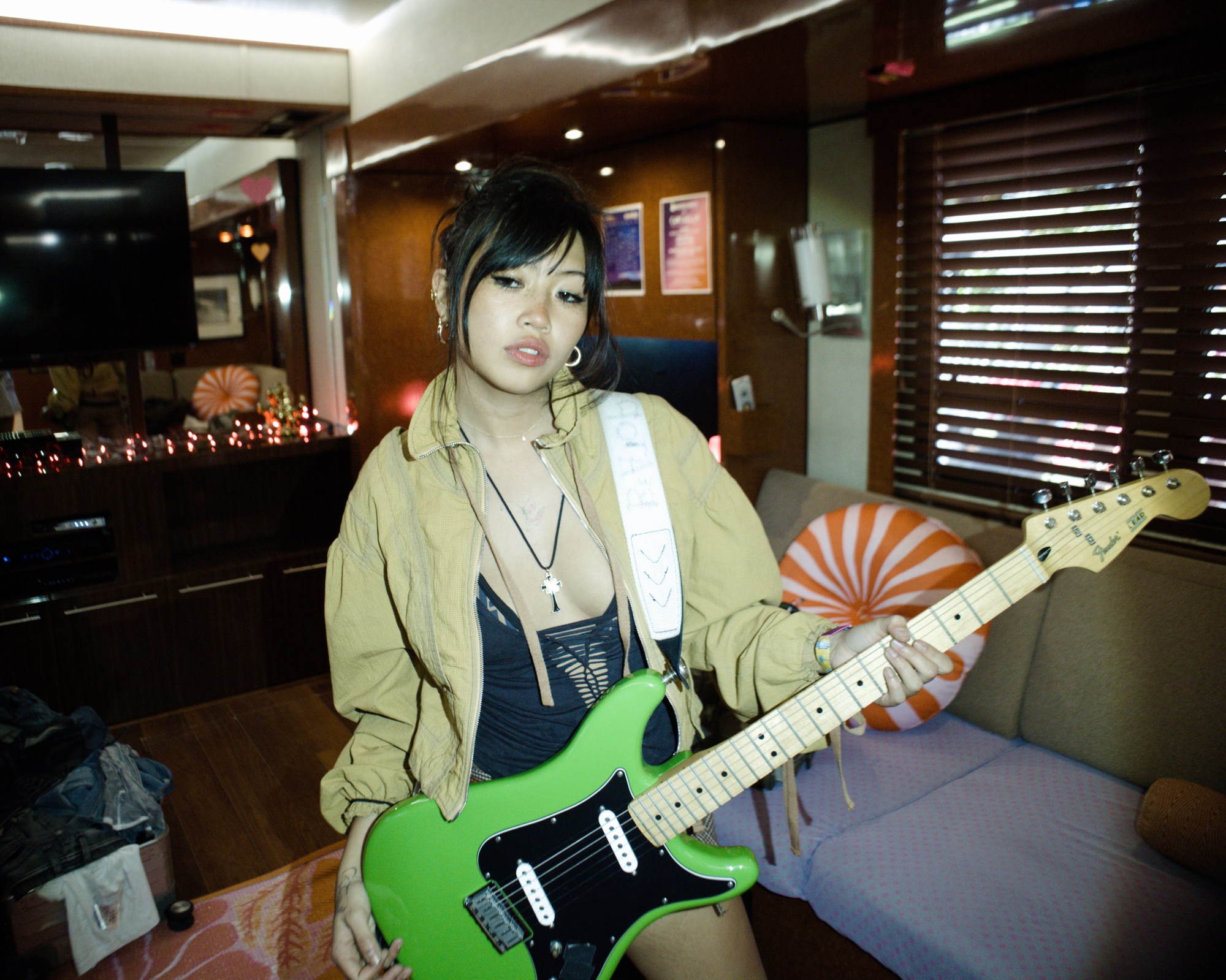 For her Saturday Coachella set Beabadoobee brought cherry blossoms to the desert. Currently the Filipino-British artist is on tour, taking that same lo-fi cool girl energy around Canada and North America. We caught up with the artist to hear all about her first time playing the Coachella main stage, being the face of Guess Jeans, and her music festival do’s and don’ts.