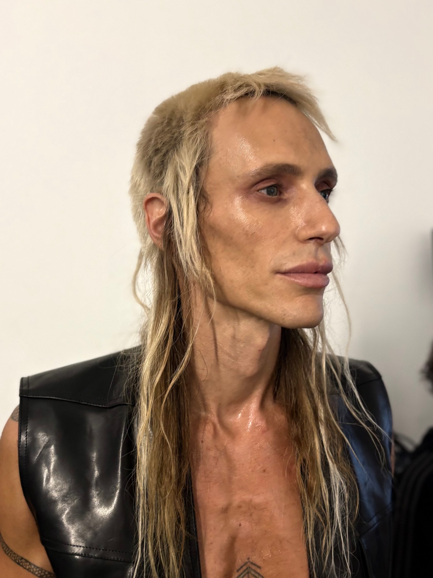 For Fall 2026, Rick Owens tapped digital artist Bernardo Martins to shape the show’s eerie beauty direction.
