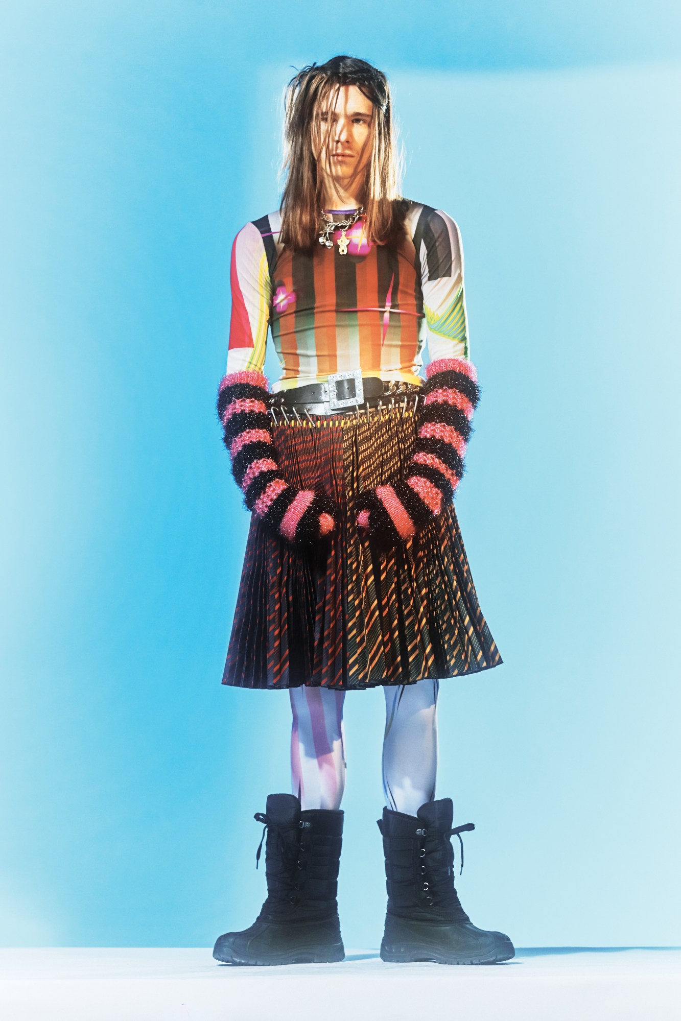 One of the great things about Conner, and perhaps an indicator of his generation’s attitude, is that he is an unapologetic fan of fashion — and he’s not afraid to admit it. That may sound obvious, but you’d be surprised by how unfashionable fashion is — even in fashion. Conner is emphatically open about his love for designers, shows, Hollywood movies and the pages of his mother’s glossy magazines that he devoured as a teenager. Case in point: he’ll gush about how he looked to Nicholas Ghesquière’s AW06 collection for Balenciaga, which he discovered as a tween, and lay out his canon of references in a way that feels radically different to fashion’s mystified creative process and snobby aloofness. It’s refreshing to see such a joyful celebration of clothes, a serious and sincere deification of the Y2K era, which is so often reduced to memes. In the words of Magnolia’s ‘Quiz Kid’ Donny Smith: “We may be through with the past, but the past is never through with us.” MS