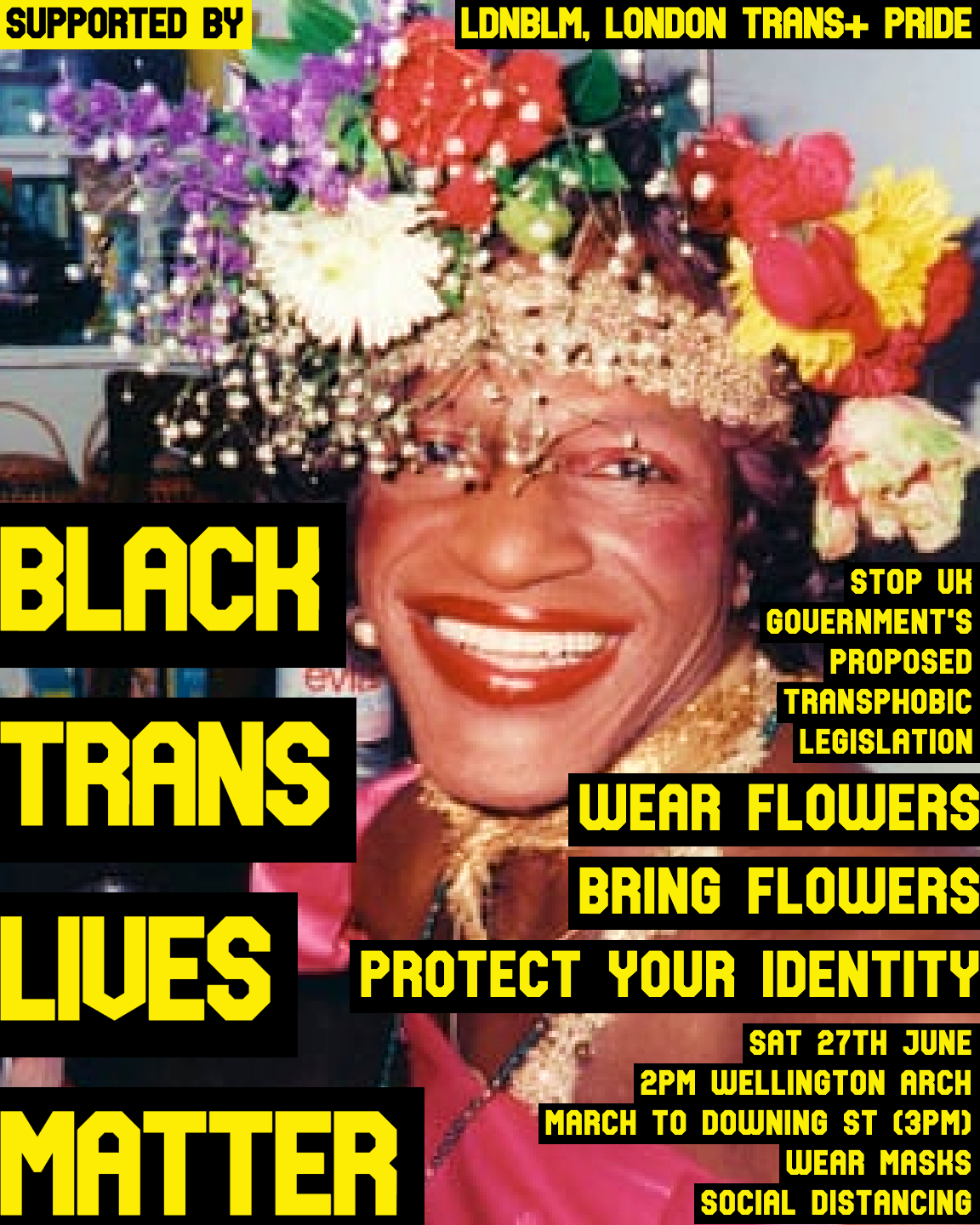 On Saturday 27 June, peaceful protesters will meet at 2pm at London’s Wellington Arch and march towards Downing Street to celebrate the Black trans community, as well as to commemorate the Black trans lives lost in the ongoing epidemic of fatal violence.