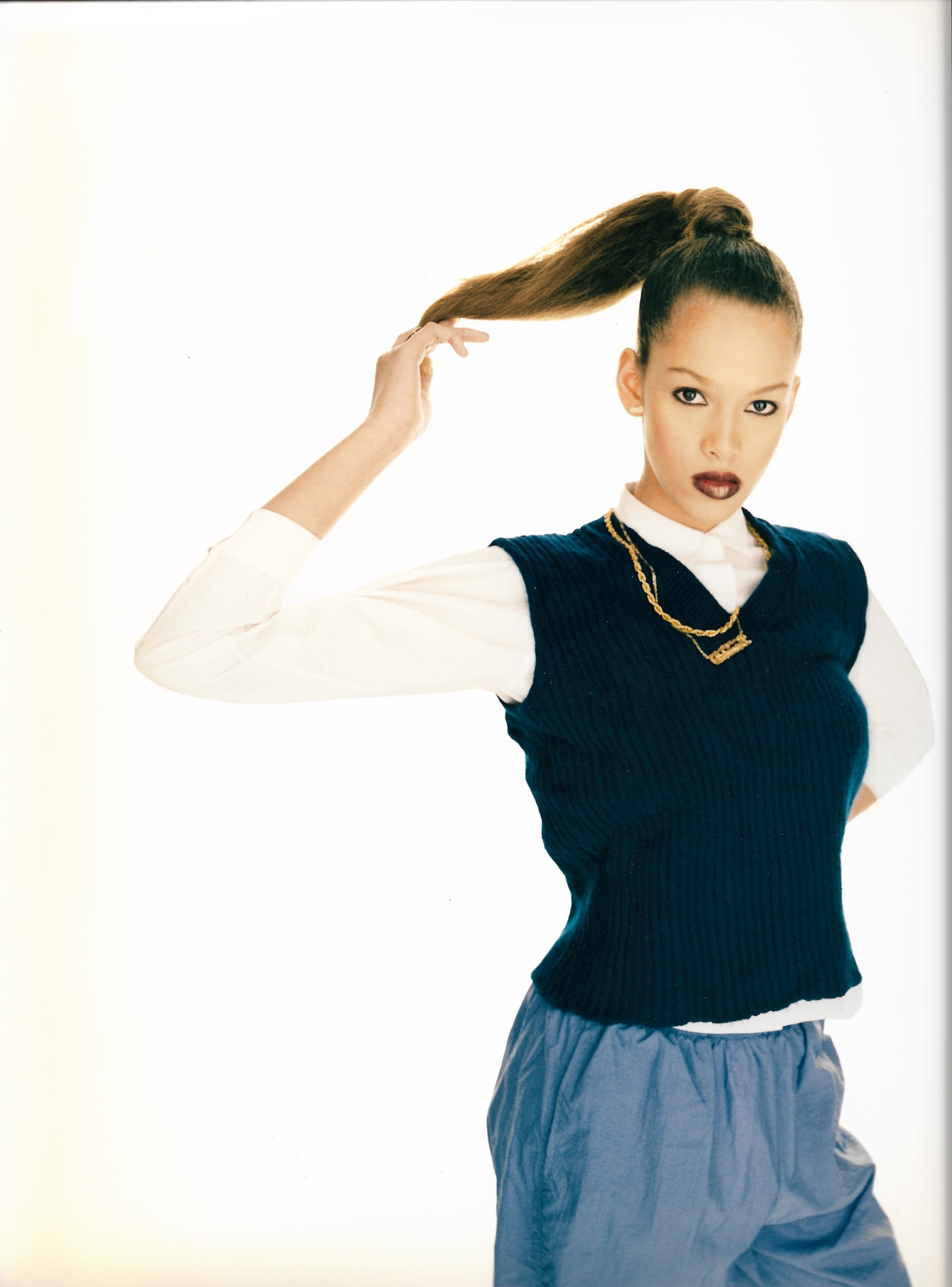 “There was a time when there were standards for models: you had to be a certain height, shape, skin colour, and the makeup and hair products just didn’t exist,” remembers Sade. “I did a lot of castings to get these models onto the pages. We couldn’t use Naomi [Campbell] because she was with an agency, so we were just like, Yo, we’re just gonna find the hardest chicks in the hood.”