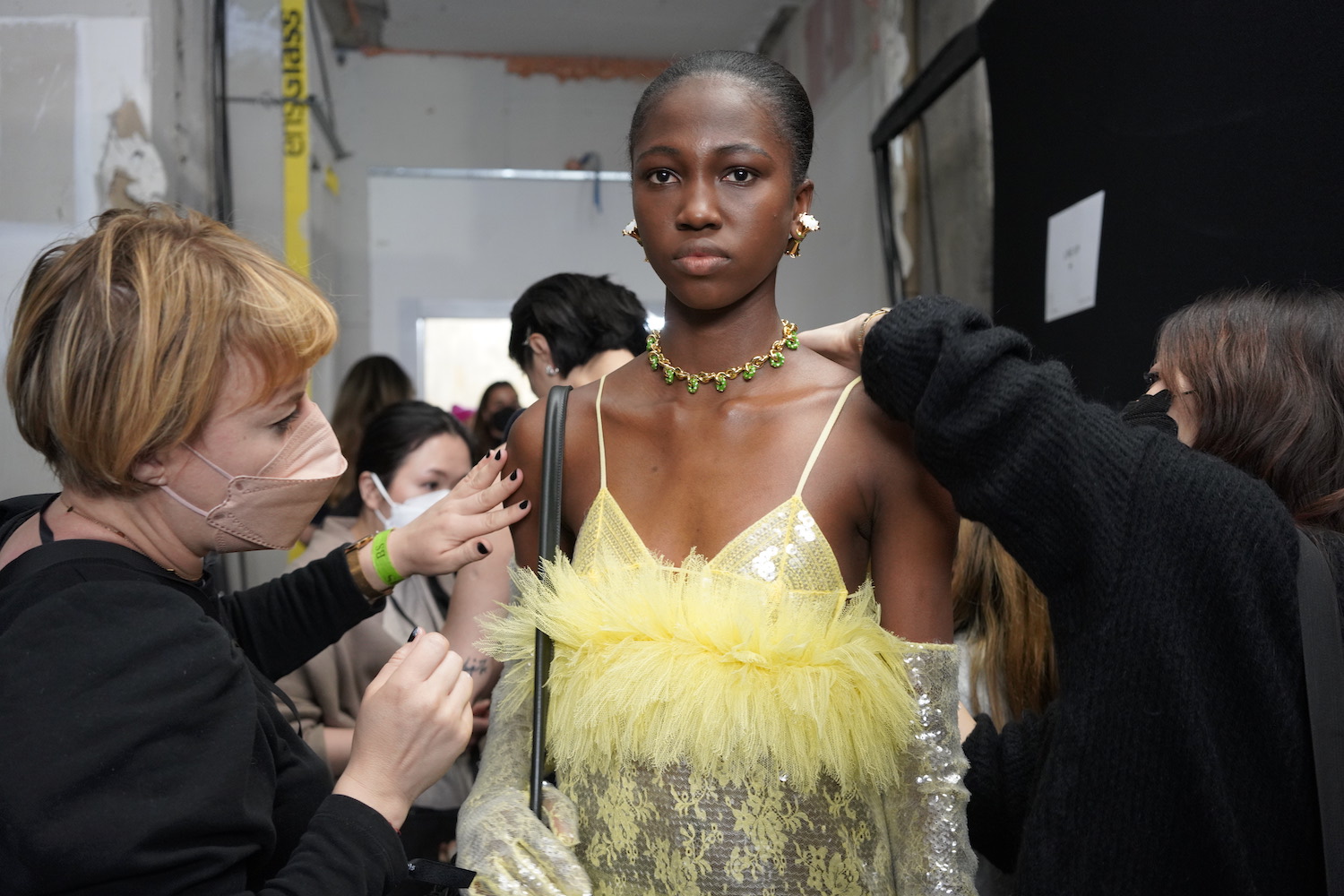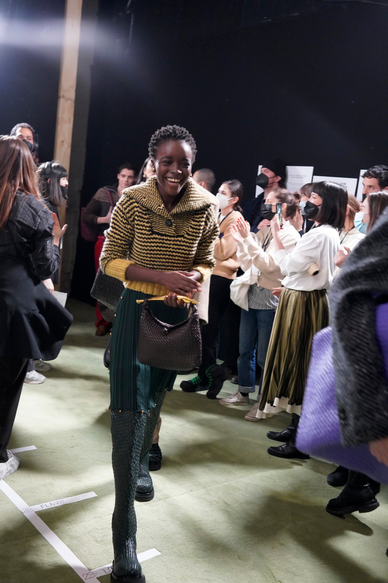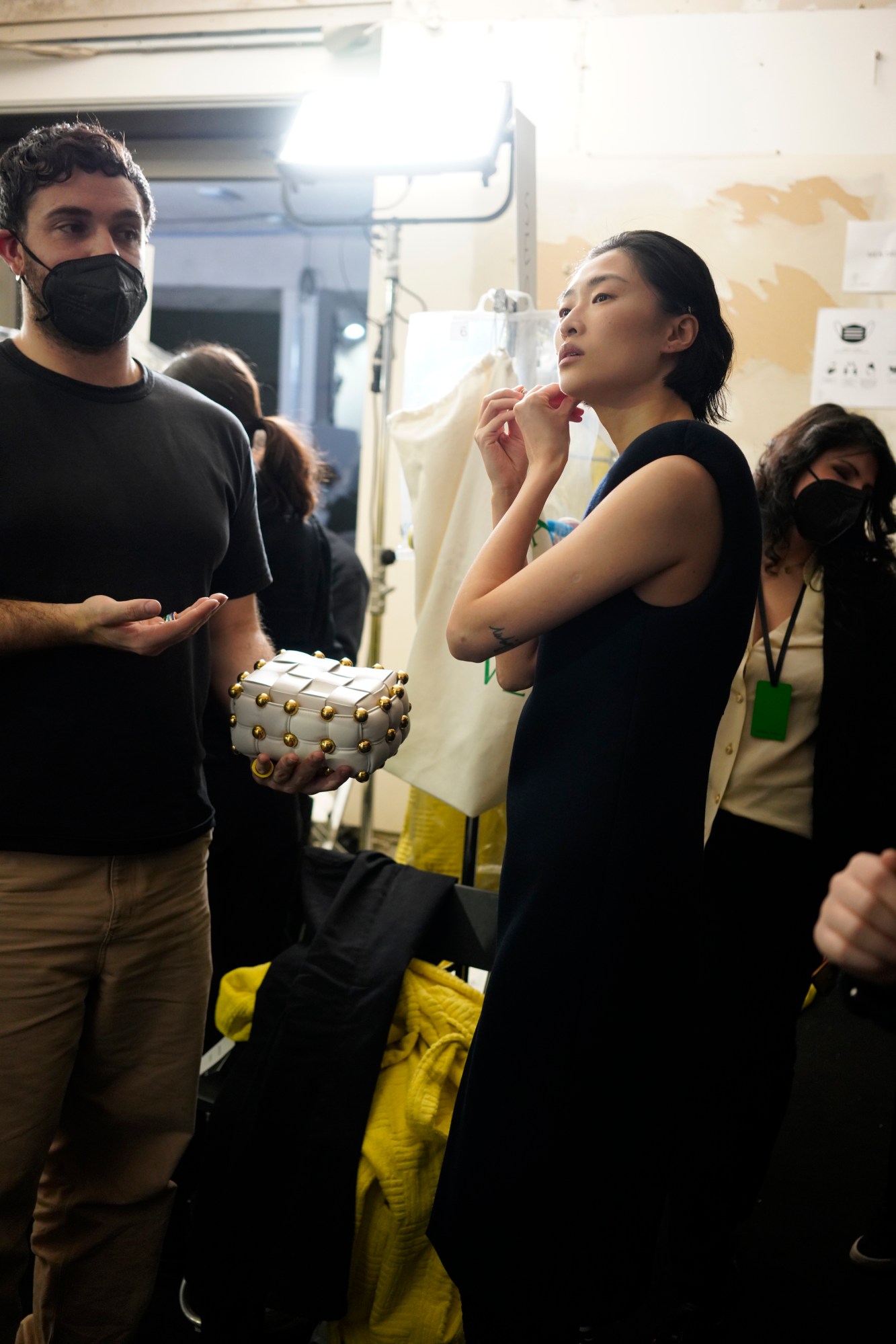 Behind the scenes of the main event, photographer Nick Waplington accompanied Matthieu, Alastair and the Bottega Veneta teams, documenting the final fittings, the backstage moments, and the celebratory spirit post show. Here, we share an exclusive BTS look at one of AW22’s most memorable shows.