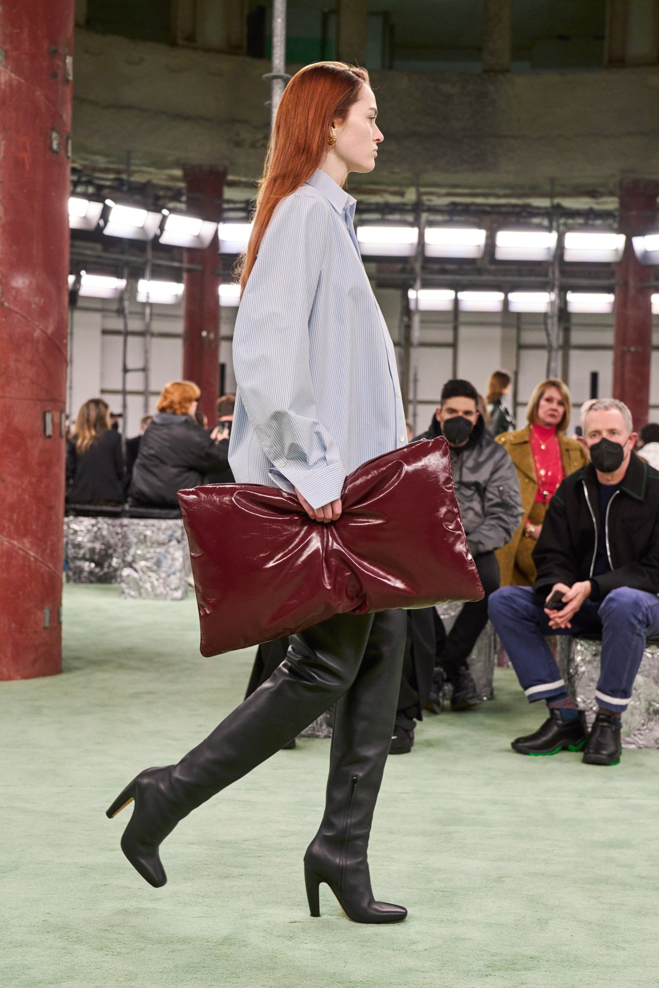 Bottega Veneta is one the jewels in Kering’s crown, so that job is a big one. Matthieu started work on the collection late last year and set upon thoughtfully developing Bottega’s offering, which must have been hard considering he’s been involved with it for quite some time. Nevertheless, he found a way, mainly by making it all cleaner, lighter and more focused on a broader sense of individualism, rather than any given concept or specific reference. In many ways, it felt more approachable — even if the extraordinary levels of workmanship elevated it even further into the fashion stratosphere. “The idea was to bring back energy, a silhouette that really expressed motion, because Bottega is a bag company, so you go somewhere, you don’t stay home,” he offered by way of explaining the collection. “Luxury in motion.”