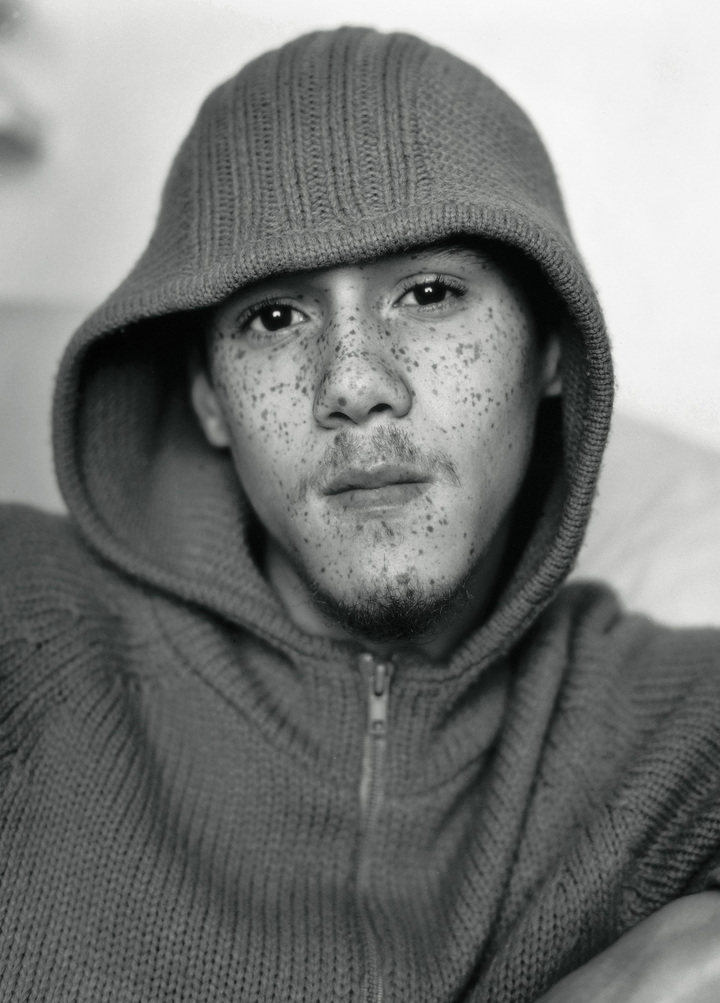 Fotografie Paul Hampartsoumian.Chris draagt Bomber jack en T-shirt van Adidas, Pet en oorbel van Chris zelf[The Upbeat Issue, no. 264]