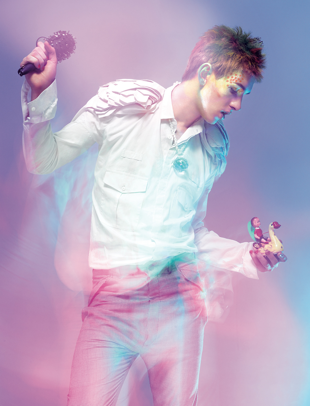 Fotografie Warren du Preez en Nick Thornton Jones.Styling Susie Lloyd.Patrick draagt shirt en broek Aitor Throup.[The World Wide Web Issue, no. 281]