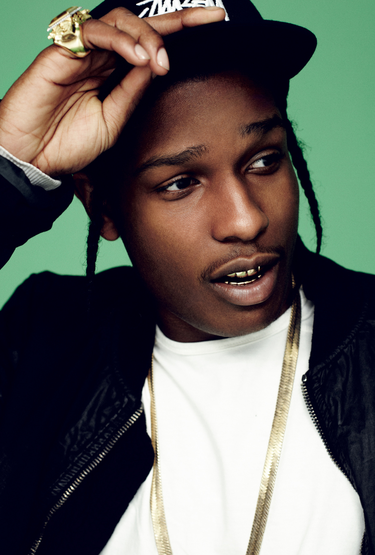 FotografieBruno Staub.Styling Matthew Henson. Fotografie assistent Andrew Beardsworth, Matthew Henson, Joshua Dotson. Styling assistent David Marshall. Set design Josh Dotson.A$AP draagt jack, T-shirt en broekDRKSHDW bij Rick Owens.