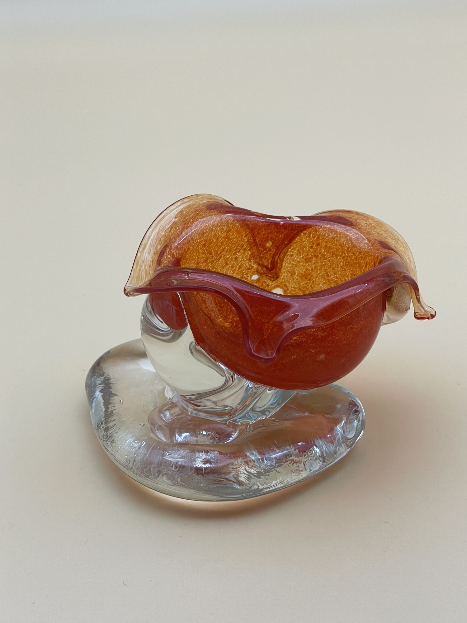 B: Yeah, my grandma collects them in her flower shop. It’s a very old Murano style, but it’s usually made of multiple pieces of glass. The tricky thing about this bag — and we’re blessed to be able to work with other fabricators at Brooklyn Glass who are far beyond our skill level — is that it’s one piece. Even though we were working with Josh [Raiffe] who’s been doing glass forever, it was a hard piece to make!