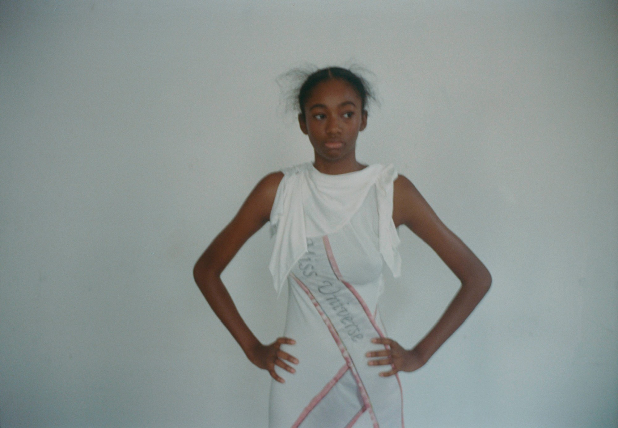 The whole idea behind the collection is success, all different ideas of success personified through these different characters—financial success, material success, athleticism. Each look talks about those different issues. It’s like, when you’re striving your whole life to be successful and then when you get there, are you even happy? And are you even really successful at the end of the day? For Charli’s look, I made a sash Miss Universe dress and I sent it to Charli’s team. I was like, I can personalize this for you if you want! We worked together to make that specific silhouette.