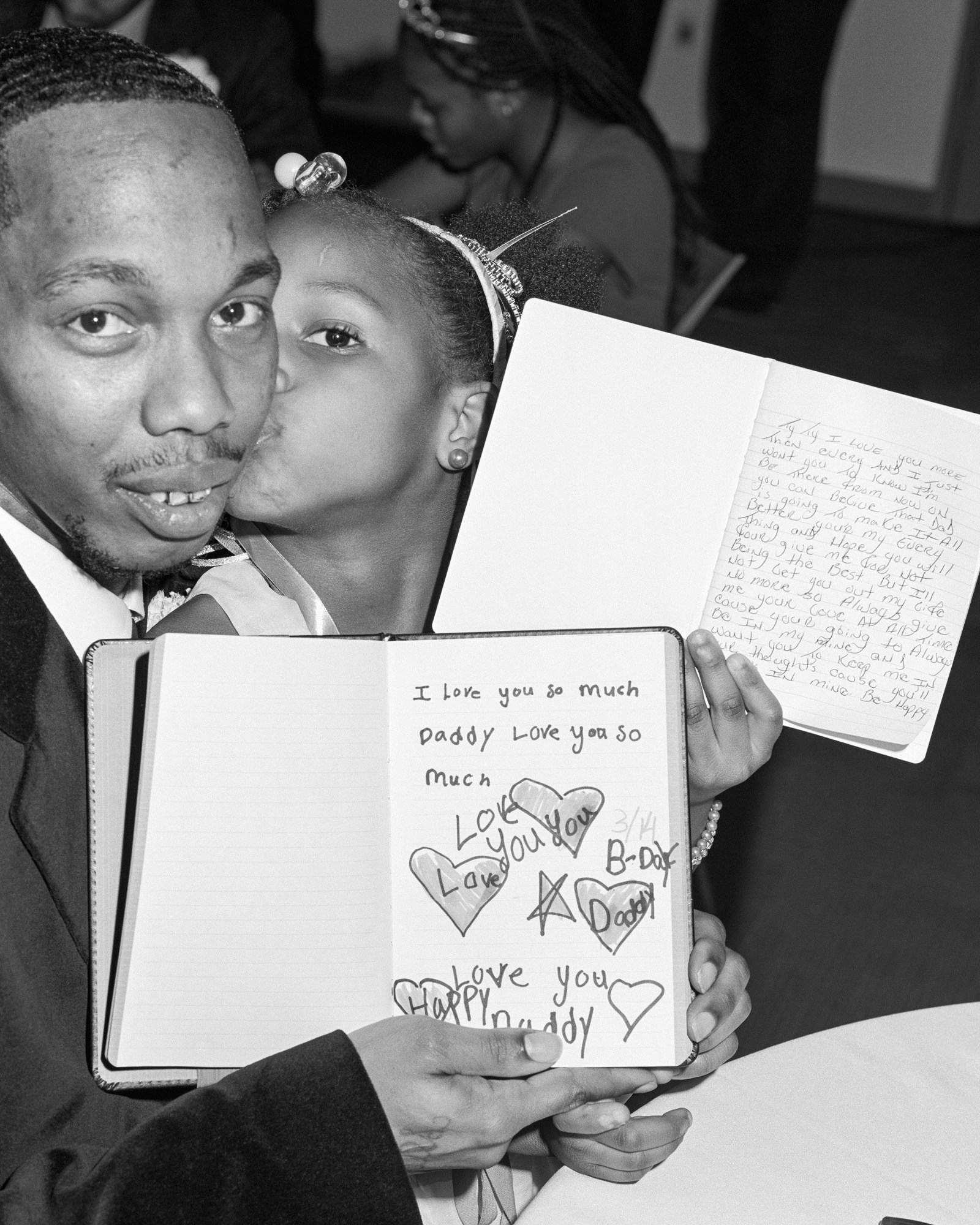 All three were in full effect over the “Date with Dad” weekend. Bruce’s photographs show the transformation that took place when the jailed men changed from their jumpsuits into donated suits for the dance. Their posture changed; they stood a bit taller. “When they put their suits on one of the prisoners said to me, ‘Now I feel like a man.'”