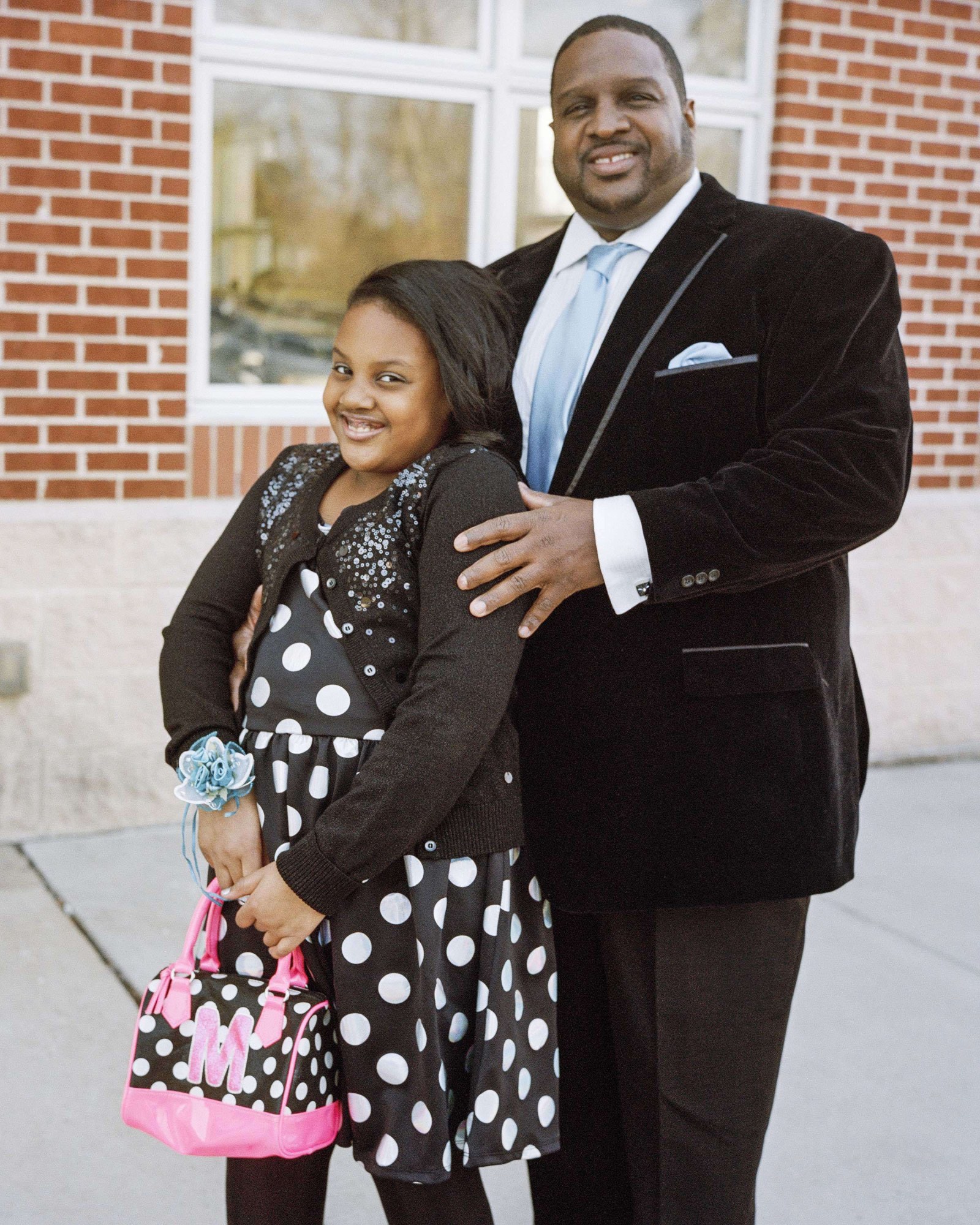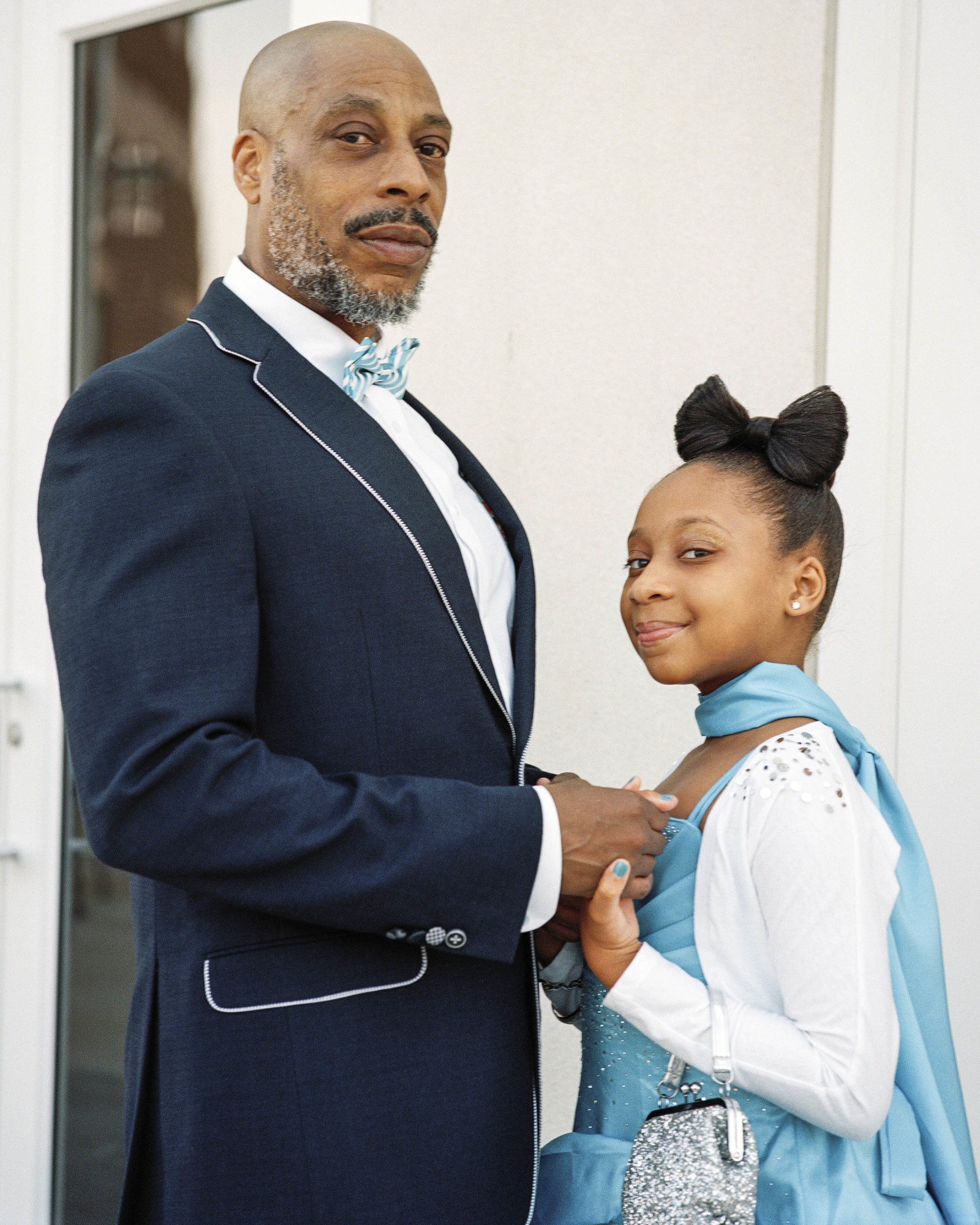 Characters emerge in the photos. We meet Tyshawn (above), the gold-toothed, tattooed charmer who grew up with an incarcerated mother and wants to create a more promising future for his daughter Ty Ty. We see smiling Ty Ty get ready for the dance, her grandmother tying bright pink ribbons in her hair.