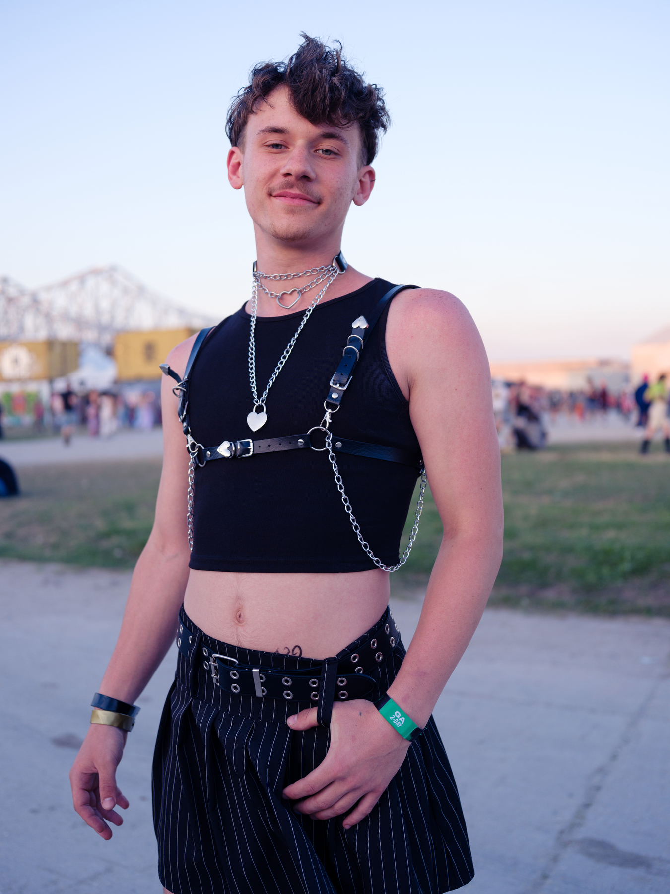 Where are you from? New Orleans. Who are you most excited to see this weekend? Tame Impala, Tyler, the Creator, Baby Keem. What’s inspiring you at the moment? The graphics at the shows. Tell us something that’s happening in your city that everyone should know about. The people! Most people say that we’re nice, but we have a lot of creative stuff that’s going on that doesn’t really get looked at as much. We don’t have as many opportunities.