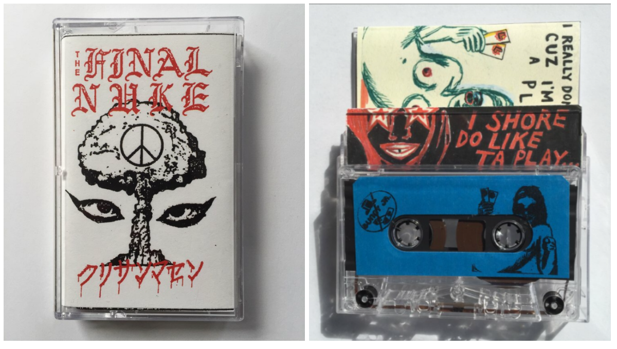 Usually, I start with a song that really hits. Then I think of other songs that fit or that I just want to hear one after another. I put it all on a playlist and I dub from my phone onto a tape player to make a master. Next I draw something up or head to a local copy machine and play around until I get something I like. In the final step, I take my master and I duplicate however many I want on my trusty tape player I bought from a homeless guy in front of a McDonald’s under a bridge!