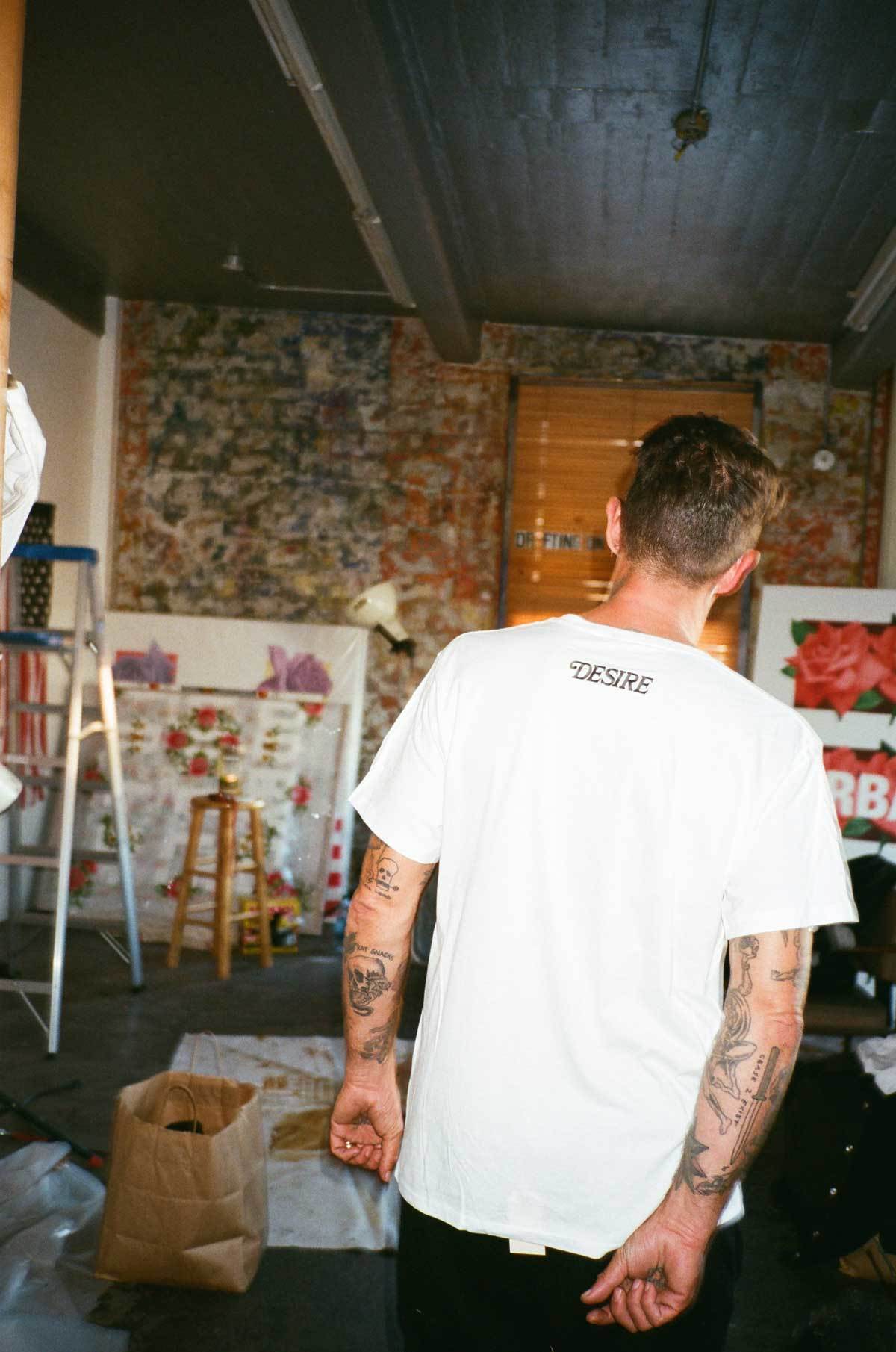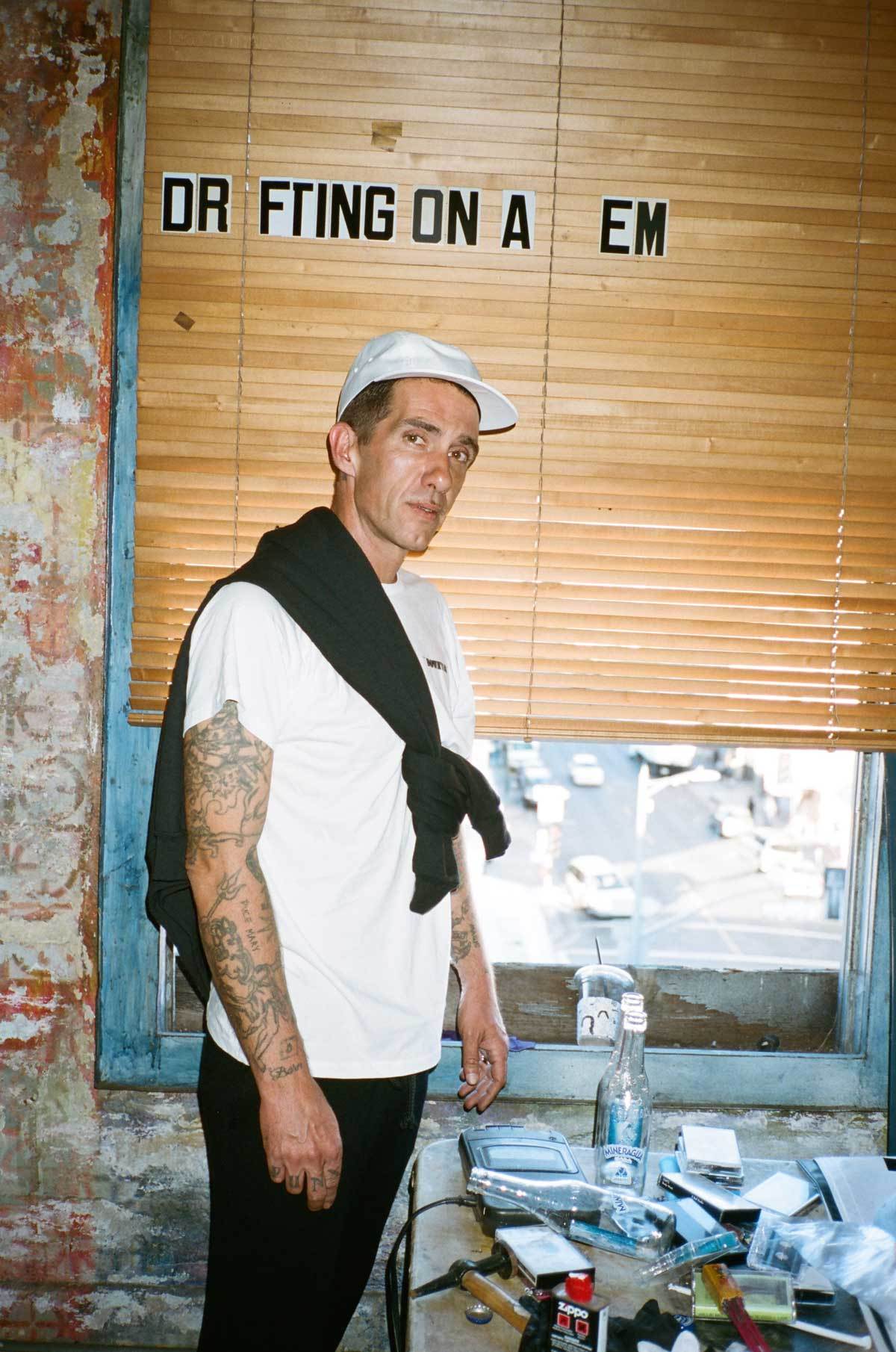 The Canadian-born, LA-raised artist has a gift for collaboration and has grown a cult underground following through his lo-fi Cali, skate-punk and slogan-heavy books, photographs, zines, music videos and sweatshirts. His latest work to get people talking was the mural he unveiled at the LA Art Book Fair, which depicted the phrase “Crying At The Orgy,” alongside a new tome he released with Printed Matter (the non-profit New York bookstore that promotes print) called Adult Books. i-D headed to his Skid Row studio to see what makes him tick.